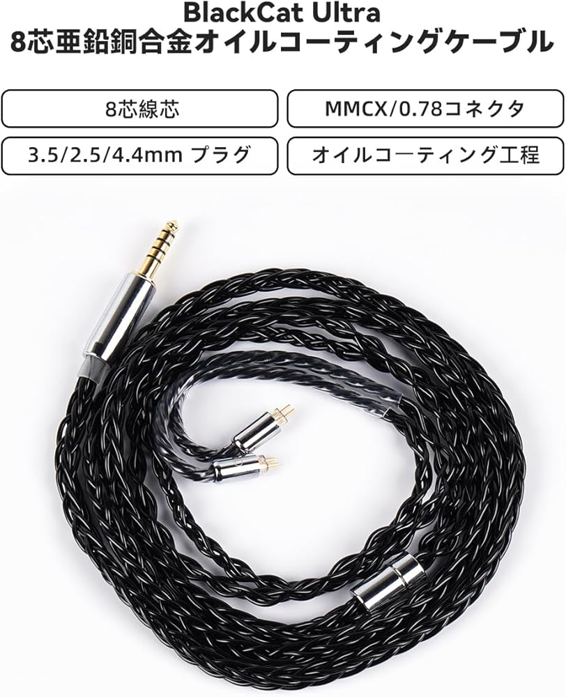 【مادة خام عالية الجودة】 كابل BlackCat Ultra، كابل HiFi ذو الميزانية المحدودة، وهو عبارة عن كابل مطلي بالزيت من سبائك النحاس والزنك ذو 8 نواة مستورد من الولايات المتحدة الأمريكية؛ يمكنك حقًا استكشاف مستوى الموسيقى التالي باستخدام كابل BlackCat Ultra، والذي يمكن أن يساعدك أيضًا سماع غناء أفضل.
