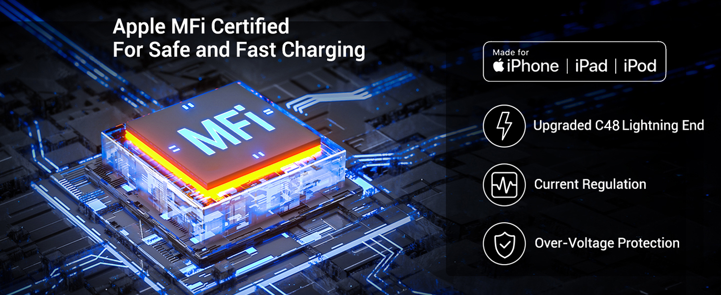 • ⚡【شحن سريع ونقل البيانات】سلك نحاسي مصبوغ عالي الجودة يدعم شحن سريع ومستقر 2.4 أمبير ونقل بيانات عالي بسرعة 480 ميجابت في الثانية مما يوفر وقتك بشكل كبير. يحتوي على شريحة مدمجة معتمدة من Apple MFi لضمان التوافق بنسبة 100% مع جهاز iPhone الخاص بك.