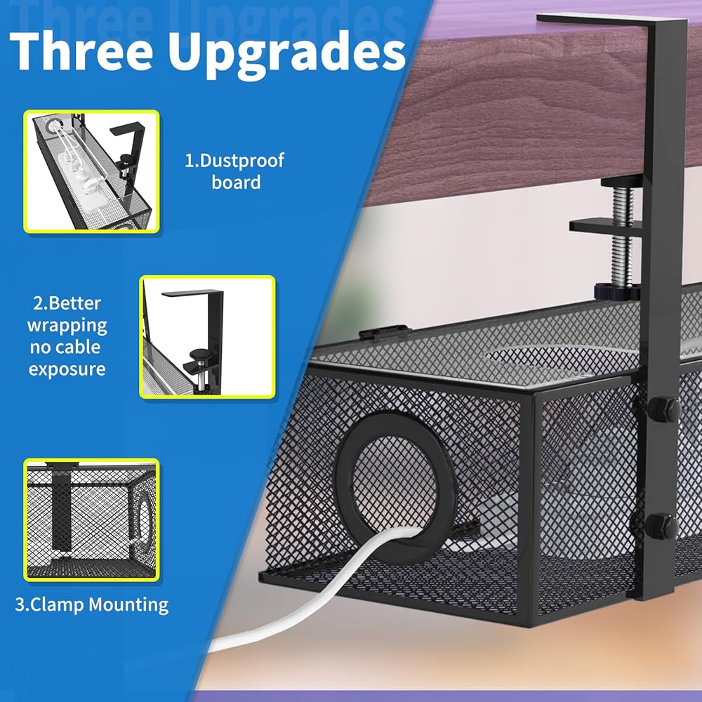 DUST COVER DESIGN:Dust cover protects cables and outlets in the under-desk cable management box .The High Quality Transparent Acrylic Dust Cover Keeps Your Cables Away From Dust And Clutter.