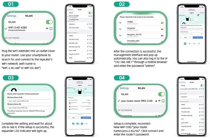 📶【WPS One-Click Setup】No need to be Tech-savvy - Simply put the WiFi range booster into the socket, then click the WPS button on extender and the router. Tap! You're setup! Or set up via Web browser on the smartphone / tablet. See included instructions