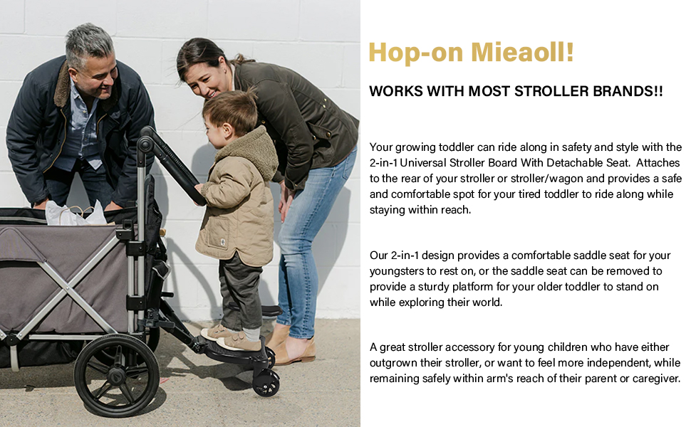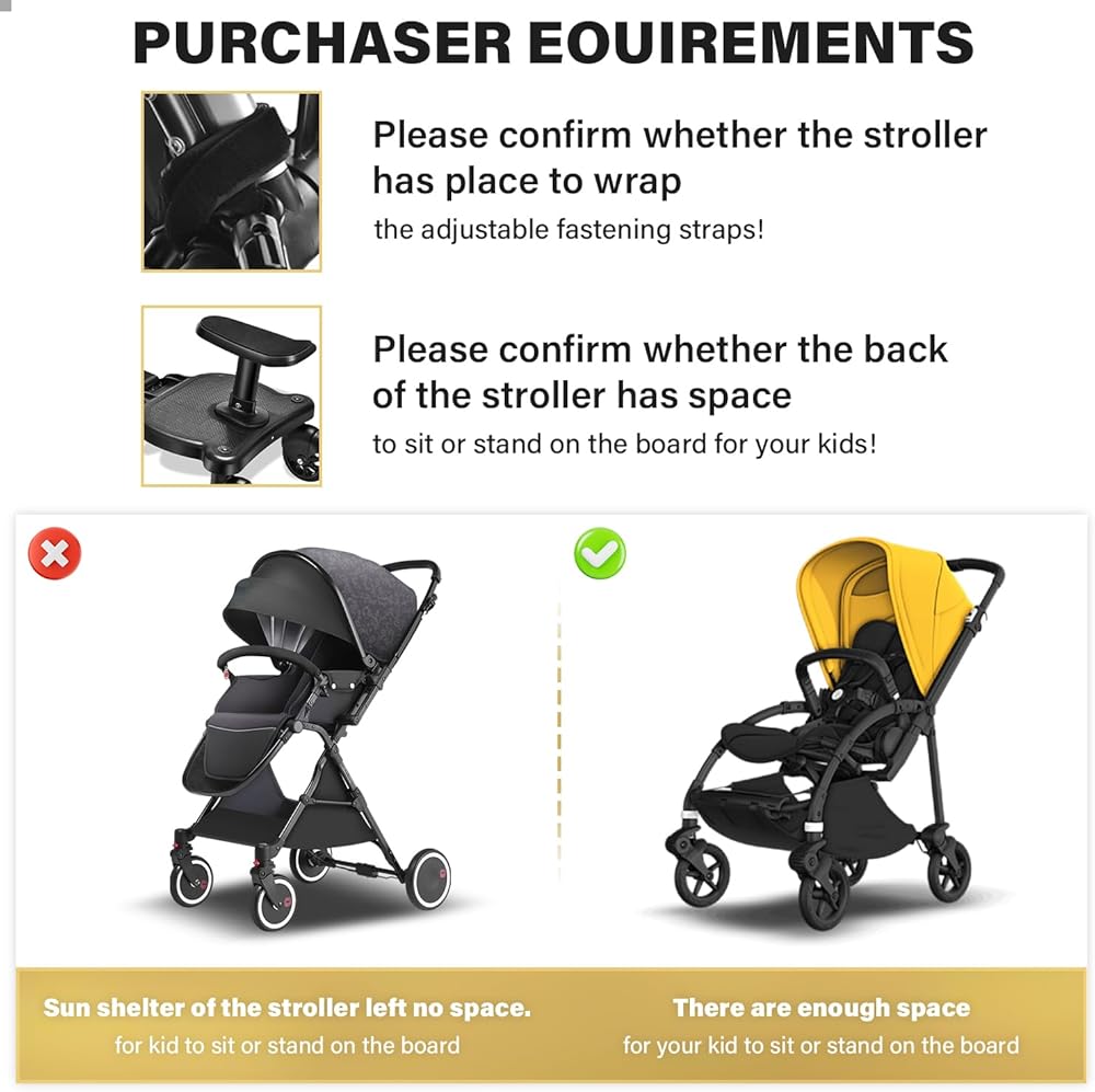 نزهة مع العديد من الأطفال: سواء كنت تقوم بمهام أو تستمتع بالمشي على مهل، فإن لوحة عربة الأطفال الخاصة بنا تنقر على الجزء الخلفي من عربة الأطفال الخاصة بك حتى تتمكن من اصطحاب طفل أكبر سنًا معك في الرحلة!
