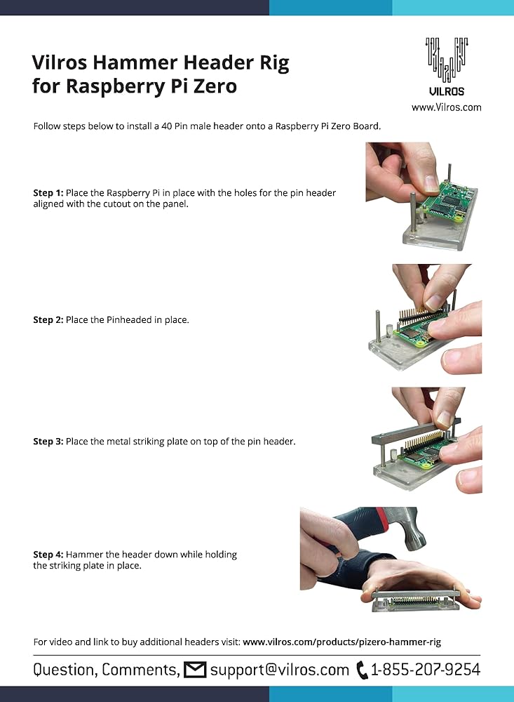 Vilros 40 Pin Hammer-in Pin Head لـ Raspberry Pi Zero مع أداة التثبيت --- حل تركيب رأس الدبوس السهل لـ Raspberry Pi Zero ---- لا يتطلب لحام