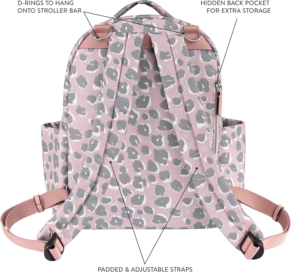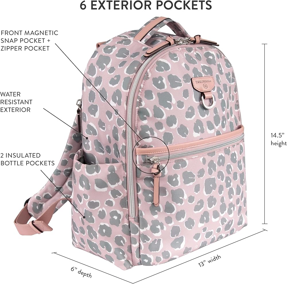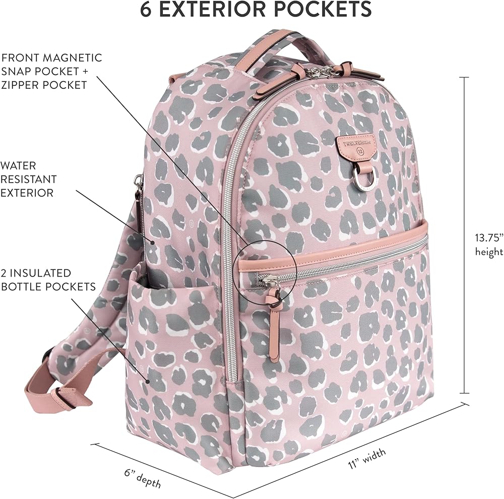 تصميم أنيق وعملي: تشتمل حقيبة الظهر TWELVElittle On The Go على وسادة تغيير بطانة متطابقة وحلقات على شكل حرف D في الخلف تسمح بربط الحقيبة بعربة الأطفال (تُباع مشابك عربة الأطفال بشكل منفصل)؛ أحزمة كتف مبطنة وقابلة للتعديل تجعل حمل الحقيبة مريحًا. تزن 2 رطل؛ يبلغ مقاسها 13.75 بوصة ارتفاعًا، و11 بوصة عرضًا، و6 بوصات عمقًا