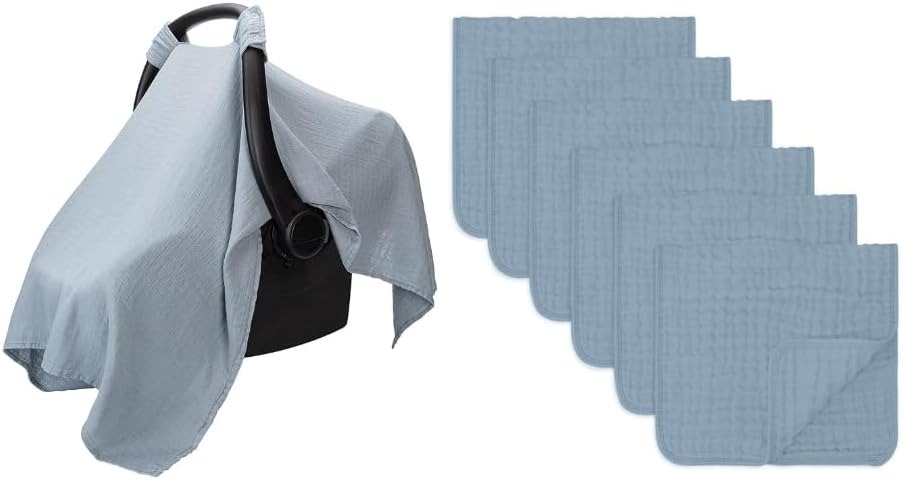 Muslin Cotton Baby Car Seat Cover and Muslin Burp loth 6 Pack, Pacific Blue Bundled by Comfy Cubs