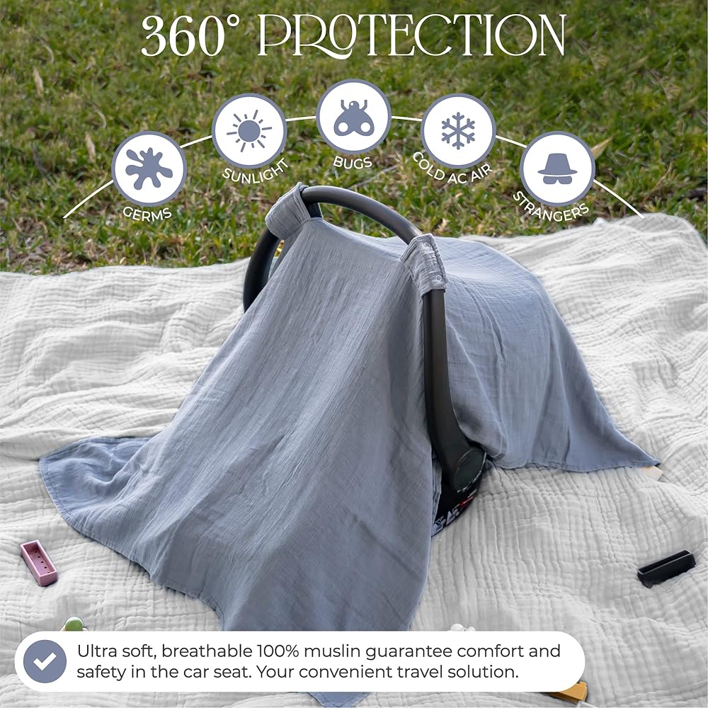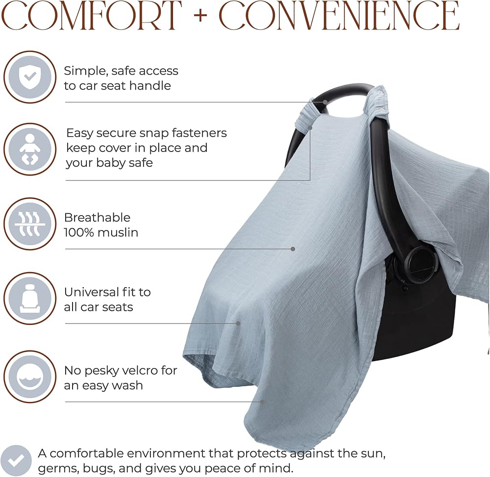 Soft & Breathable: Our Comfy Cubs Baby Car Seat Cover is made of 100% muslin cotton, providing a soft and breathable environment for your little one.