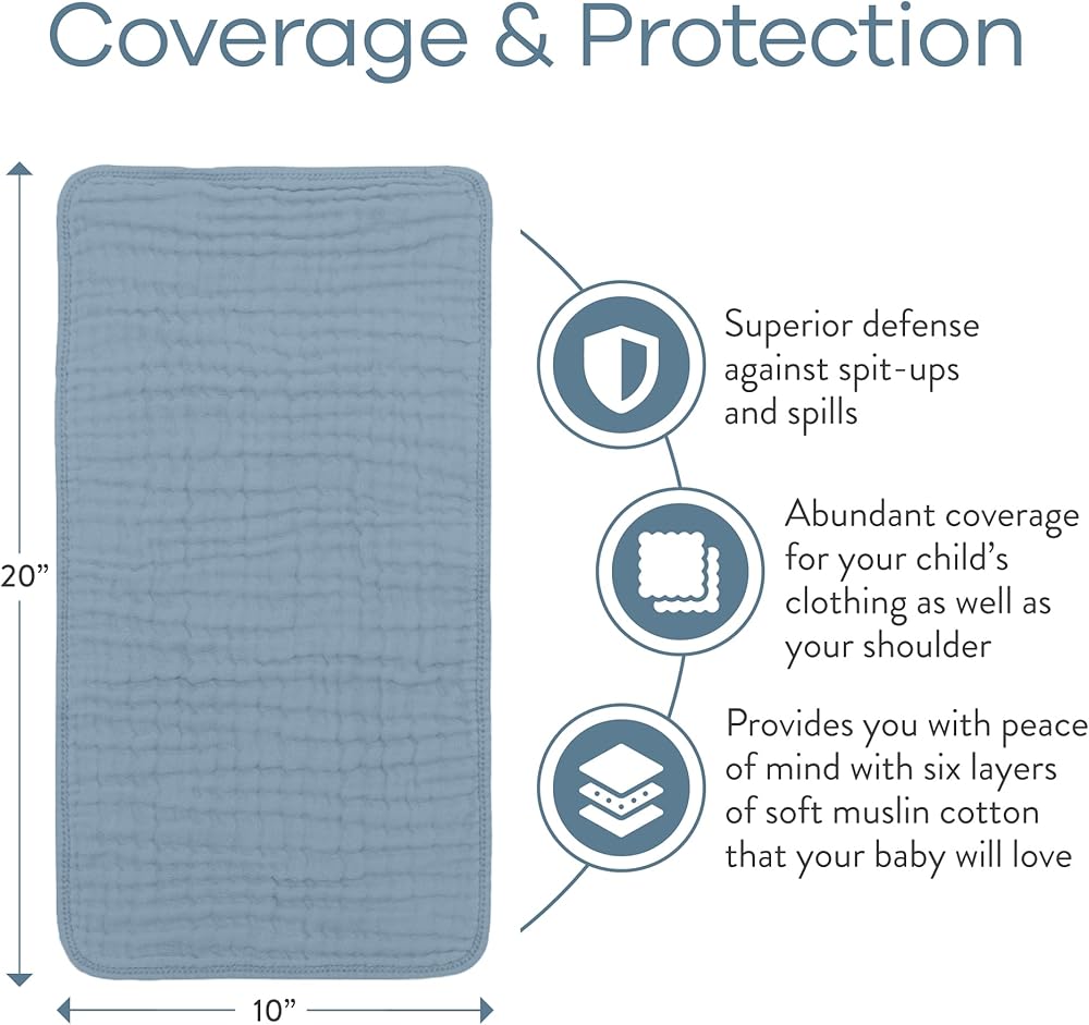 Versatile and Convenient: Use them to protect your clothing when burping, wipe up messes, as a breastfeeding cover-up, for teething, dribbling babies, or as a changing mat cover. They come in 6 or 10 multi-packs, offering an affordable solution to keep your baby clean and dry. With multiple cloths on hand, you'll always have a fresh one when you need it.