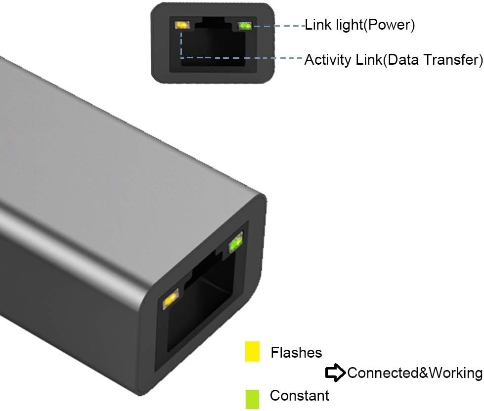 يوفر منفذ USB 3.0 Gigabit Ethernet سرعة شبكة فائقة السرعة تصل إلى 1000 ميجابت في الثانية (1 جيجابت في الثانية)، متوافقة مع 10 /100 ميجابت في الثانية. قم بتوصيل الشبكة السلكية لتلبية احتياجات الألعاب والمكتب والتنزيل. أسرع وأكثر موثوقية من معظم الاتصالات اللاسلكية. مصابيح LED للارتباط والنشاط. يعمل بمنفذ USB، ولا يحتاج إلى طاقة خارجية. متوافق مع الإصدارات السابقة مع USB 2.0/1.1.