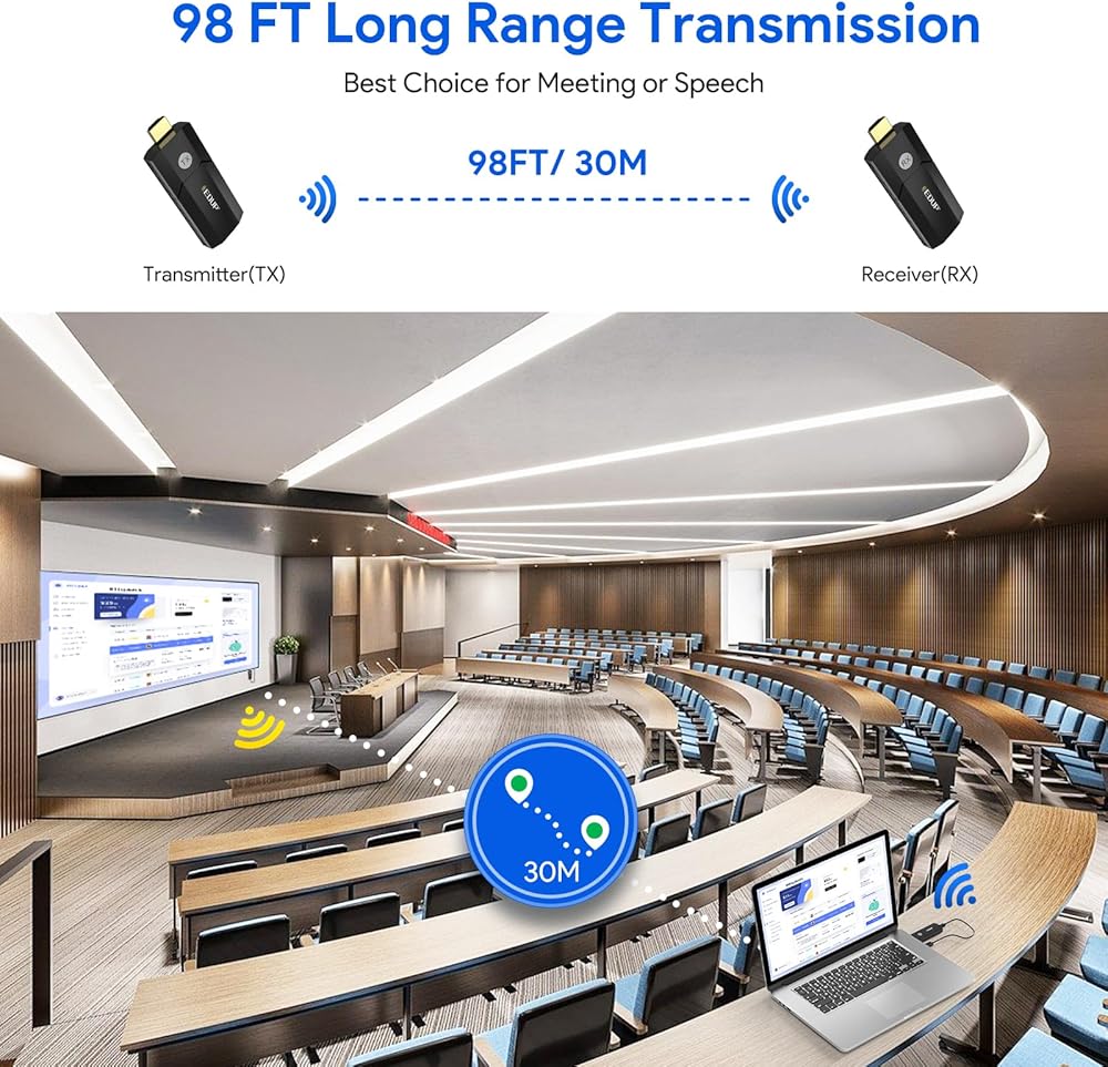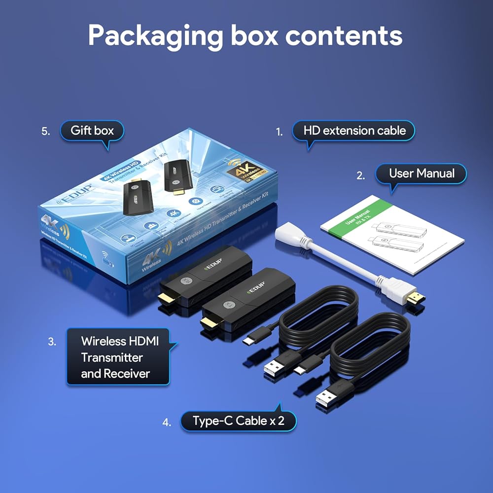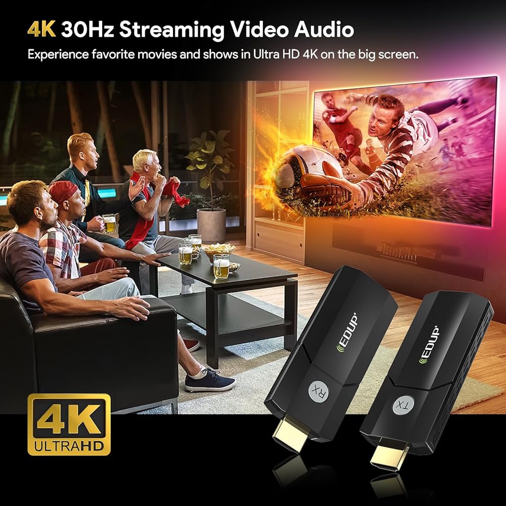 جهاز إرسال واستقبال HDMI لاسلكي من EDUP، فك تشفير وإسقاط 4K فائق الدقة، نطاق 100 قدم، التوصيل والتشغيل، 2.4 جيجا/5 جيجا، موسع HDMI لاسلكي لبث الفيديو/الصوت إلى الشاشة من الكمبيوتر/صندوق التلفزيون/جهاز العرض