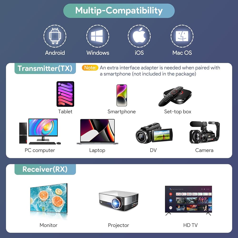 【نطاق ممتد واتصال ثابت】مع نطاق واسع يصل إلى 98 قدمًا/30 مترًا، تضمن مجموعة موسع HDMI الخاصة بنا نقلًا لاسلكيًا ثابتًا وموثوقًا. سواء كنت في غرفة اجتماعات، أو فصل دراسي، أو غرفة معيشة، استمتع بالاتصال دون انقطاع دون فقدان الإشارة أو التداخل.