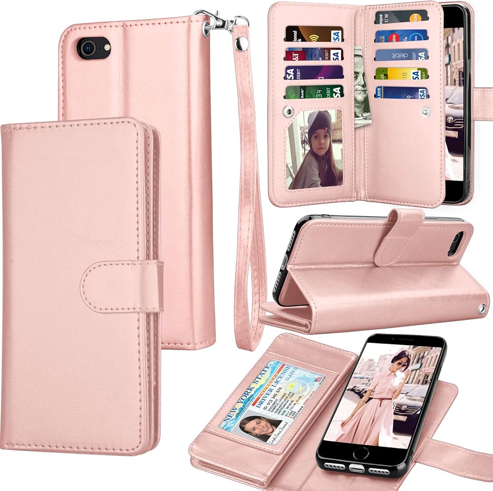 Tekcoo Wallet Carrying Pouch Case, Tekcoo Built-in 11 Card Solts Flip Cover Case ,Perfectly Compatible with iPhone SE 2020 / iPhone 7 / iPhone 8 AT&T Sprint Verizon T-mobile International unlocked Cricket U.S. Cellular Straight Talk All Carriers.