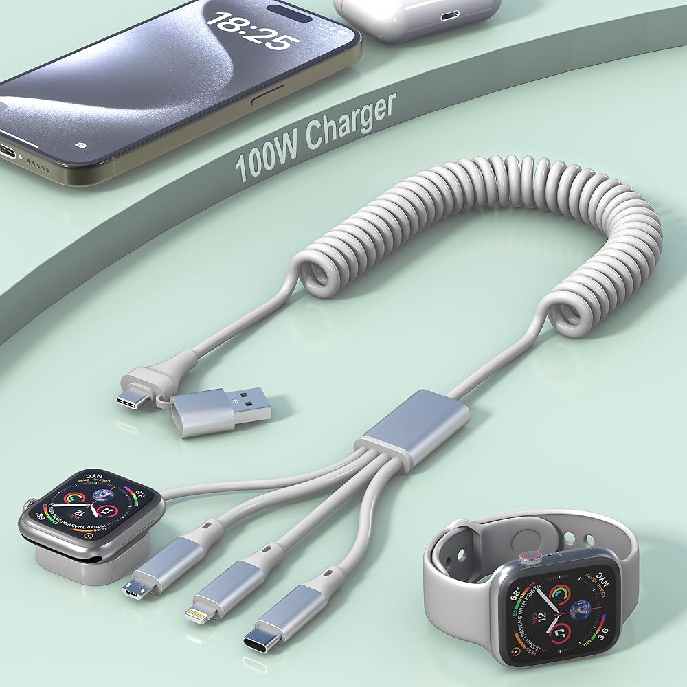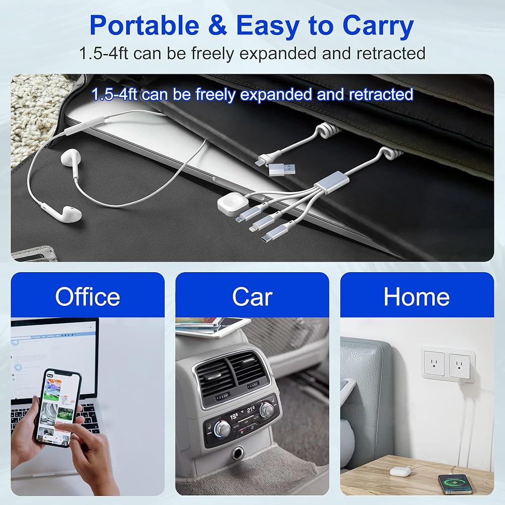 ⚡ كابل شحن سريع 4 في 2 USB A/C قابل للسحب: يحتوي كابل الشاحن المتعدد USB C القابل للسحب على 4 منافذ: الإضاءة/النوع C/Micro USB وساعة مغناطيسية، بما في ذلك 8 طرق شحن: شاحن USB C/A إلى iWatch، USB C /A إلى كابل Lightning، وكابل USB C/A إلى النوع C، وكابل USB C/A إلى Micro USB. يدعم شاحن السفر المدمج لـ iPhone وApple Watch شحن 4 أجهزة في نفس الوقت، ويمكن استخدامه في المنزل وفي السيارة وفي المكتب، مما يوفر المساحة والمال.