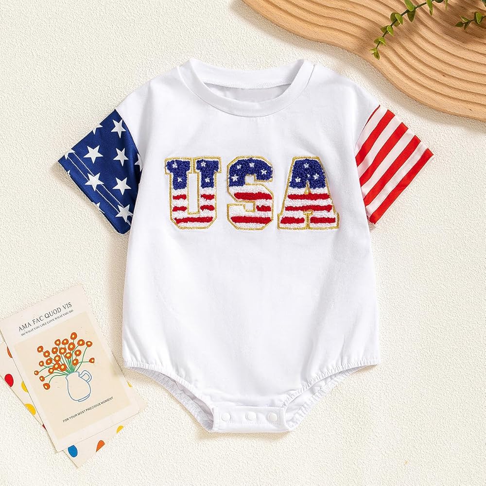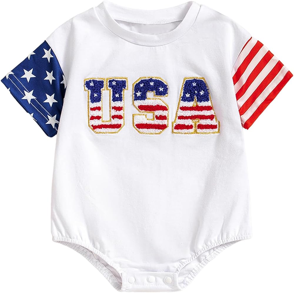 4th of July Baby Boy Girl Outfit USA Romper Short Sleeve Bodysuit Top Summer Clothes