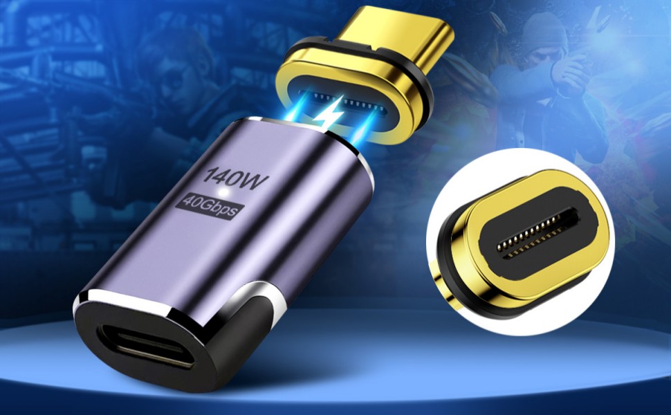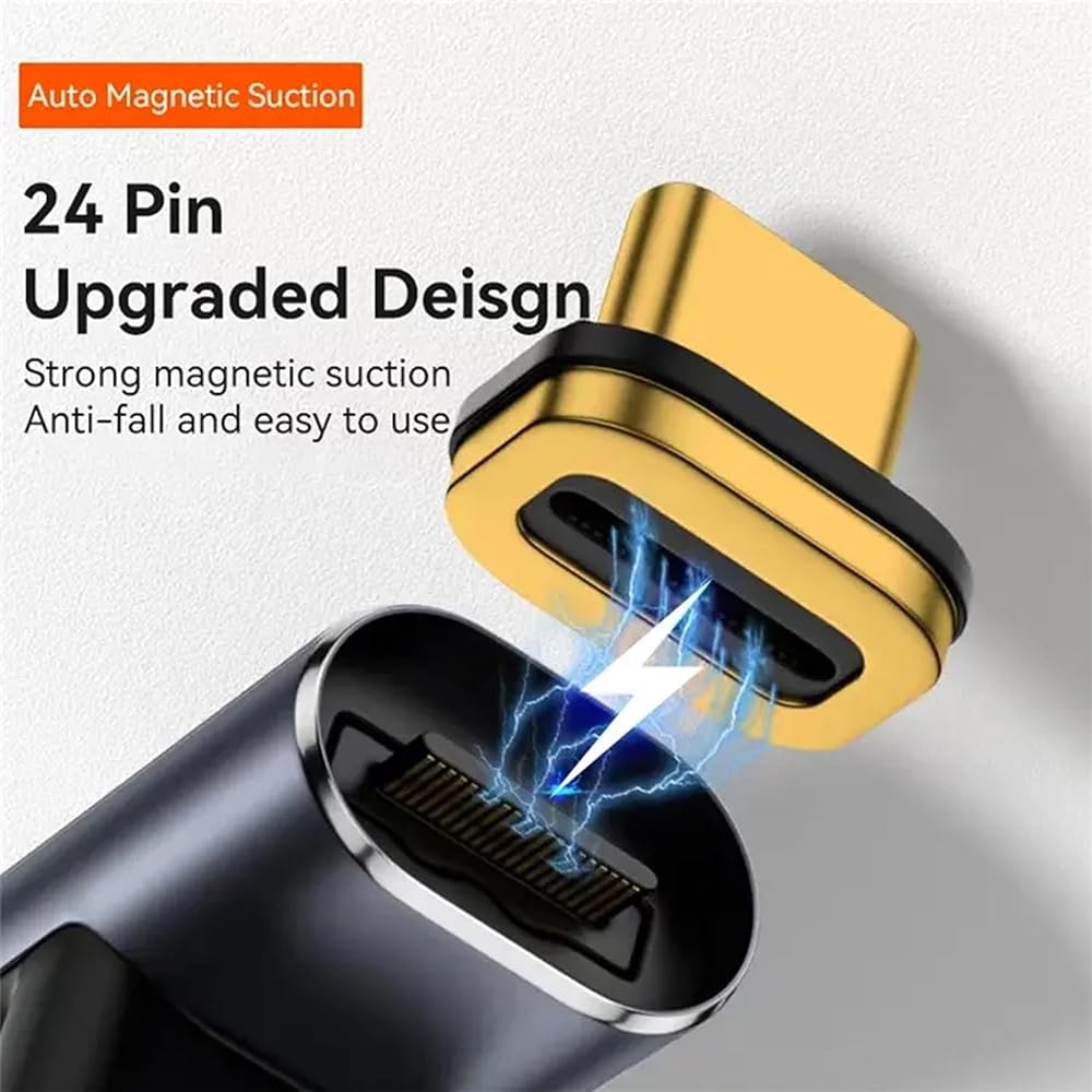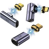 (3 عبوات) محول USB C مغناطيسي 24 دبوس من النوع C، شحن سريع PD3.1، نقل بيانات عالي السرعة 140 وات USB4، 40 جيجابايت/ثانية، مخرج 8K60 هرتز محول مغناطيسي قوي من النوع C لأجهزة USB C.
