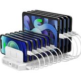 محطة شحن لأجهزة متعددة: تشحن ما يصل إلى 10 أجهزة تعمل بالطاقة عبر USB في وقت واحد، خاصة تدعم 9 أجهزة iPad في وقت واحد. منفذ USB يدعم إخراج 5V2.4A. احتفظ بأجهزتك كلها في مكان واحد وحافظ على تنظيم جهازك بشكل جيد. ملاحظة: لا يتم تضمين كابلات الشحن.