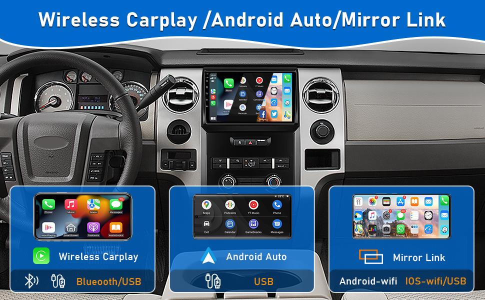راديو ستيريو للسيارة بسرعة اتصال فائقة: تدفق إشارة Carplay&Android Auto مستقر للغاية، ما عليك سوى التحدث إلى Siri/hey Google أو لمس شاشة جهاز الاستقبال للحصول على الاتجاهات من خرائط الهاتف، وإجراء المكالمات الهاتفية، والاستماع إلى البريد الصوتي، وإرسال واستقبال النصوص، والاستماع إلى الموسيقى من Phone Music أو خدمات البث المفضلة لديك من طرف ثالث مثل Pandora وSpotify، كل ذلك بطريقة تتيح لك الاستمرار في التركيز على الطريق.