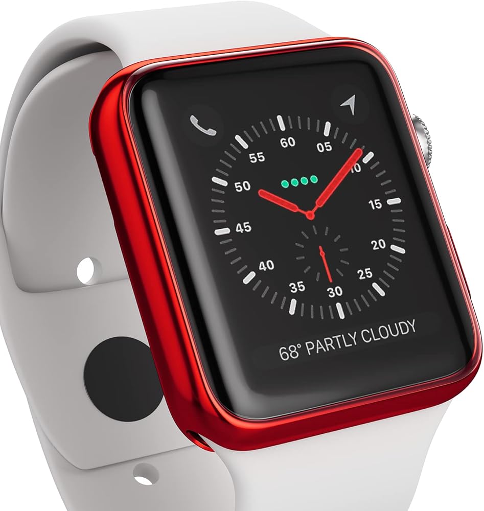 حافظة ممتصة للصدمات متوافقة مع Apple Watch Series 3/2 / 1 - [38 ملم] | واقي شاشة بغطاء كامل ناعم، رفيع/خفيف الوزن، جراب ممتص للصدمات | أحمر