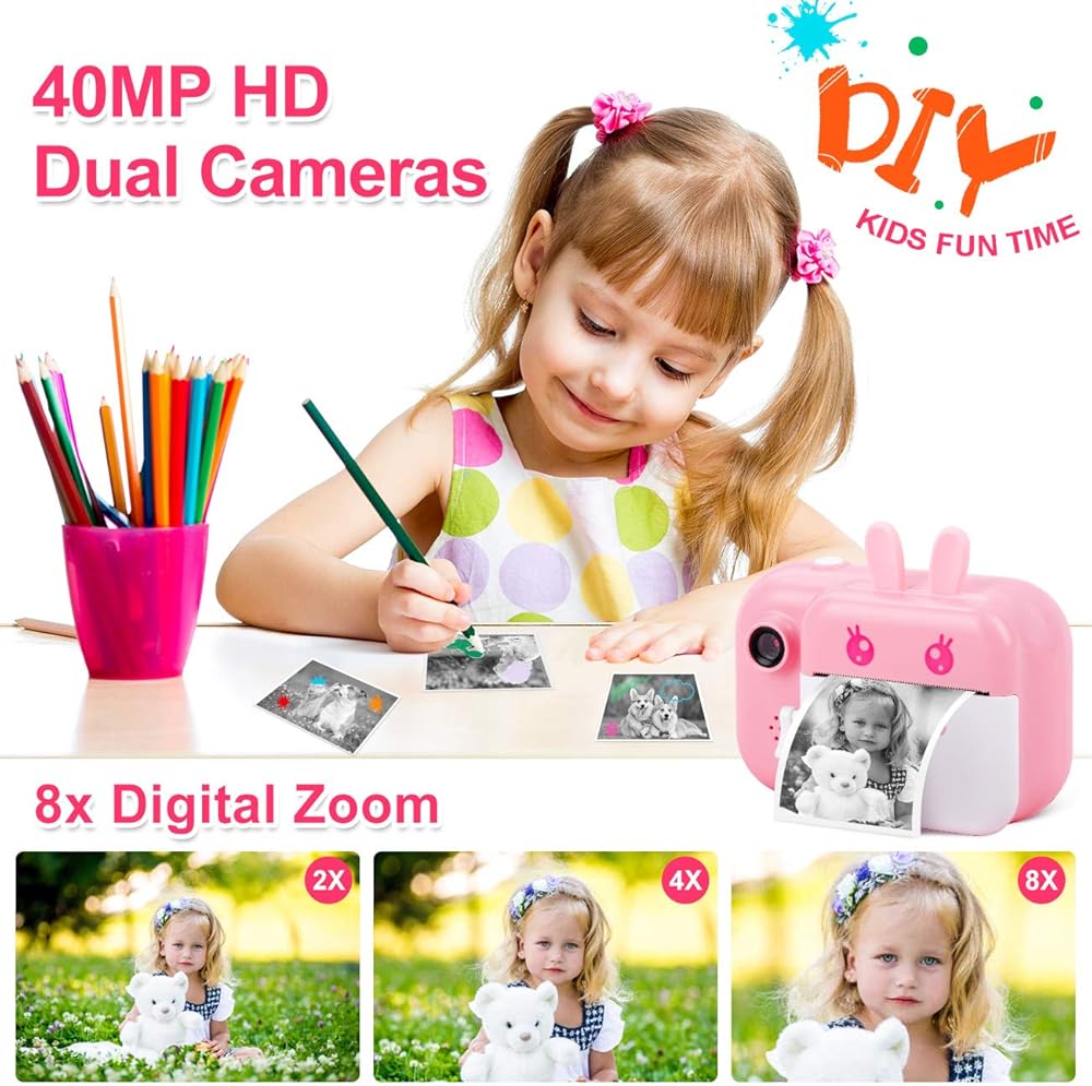 كاميرا MiniBear الفورية للأطفال الكاميرا الرقمية للفتيات الصغار و 10 لفات طباعة ورق للأطفال
