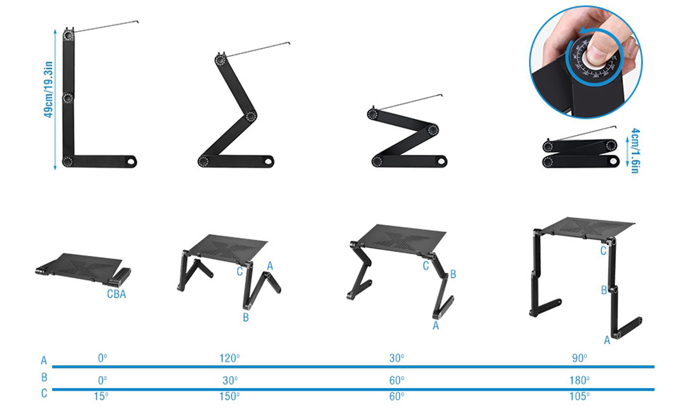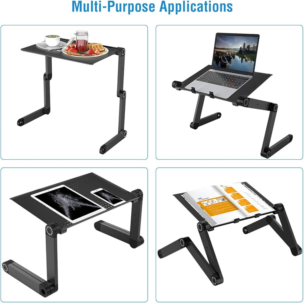 💻【مريح في الاستخدام والتخزين】حامل الكمبيوتر المحمول القابل للتعديل لا يحتاج إلى تجميع، فقط اضبط الزاوية المرغوبة للاستخدام. يمكن لهذه الأرجل القابلة للتعديل بالكامل أن تدور 360 درجة وتثبت في مكانها بزوايا مختلفة. يتيح لك التصميم خفيف الوزن والقابل للطي حمل طاولة الكمبيوتر المحمول المريحة الخاصة بك في أي مكان تذهب إليه، ويمكن طيها بشكل مسطح لتوفير المساحة والحفاظ على غرفة المعيشة أو العمل الخاصة بك أنيقة ومنظمة.