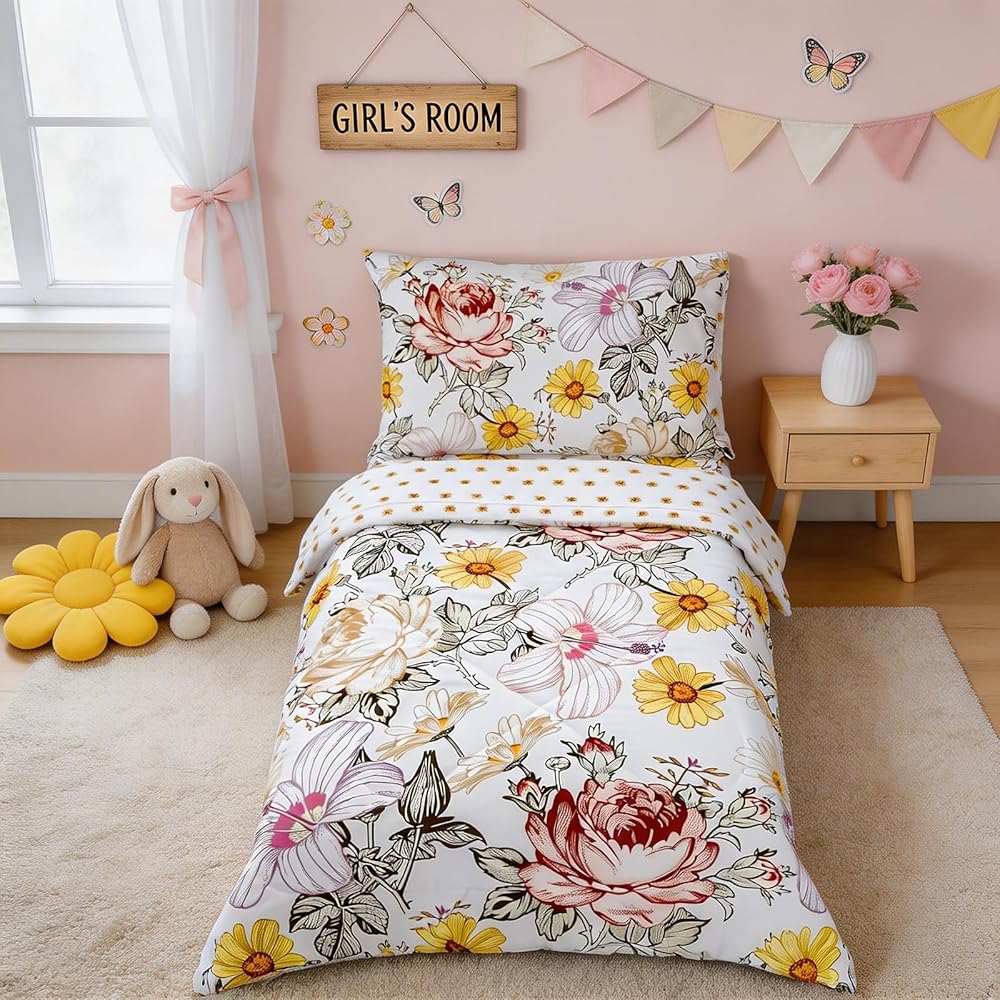 • أفضل هدية: يتميز طقم سرير الفتيات الصغيرات هذا بتصميم حيوي وساحر مع زهور لطيفة وجميلة، مثالي للفتيات. إنها هدية مثالية لأطفالك سواء كان عيد ميلاد أو أي مهرجان آخر.