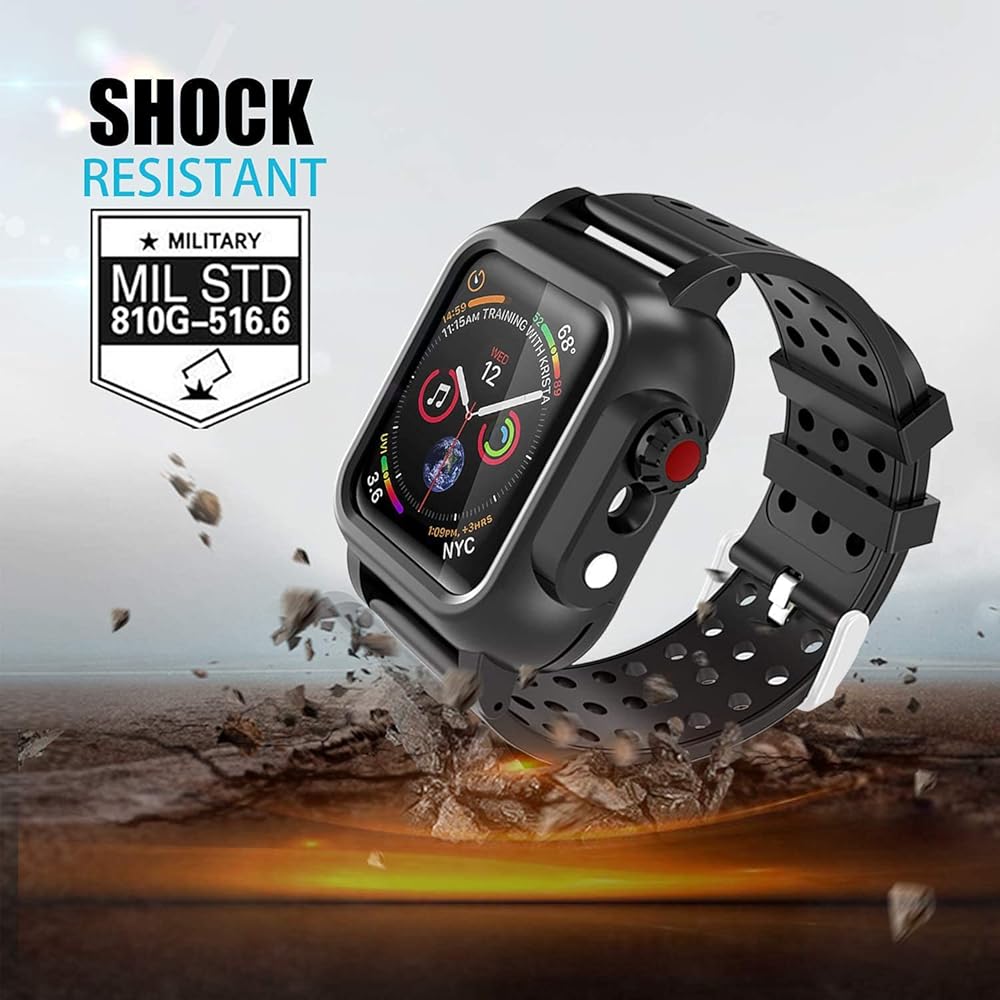 حافظة احترافية مقاومة للماء لساعة Apple Watch Series 3 وSeries 2 بحجم 38 ملم مع واقي شاشة مدمج وغطاء كامل للجسم مقاوم للماء ومضاد للخدش ومقاوم للصدمات مع حزام الساعة