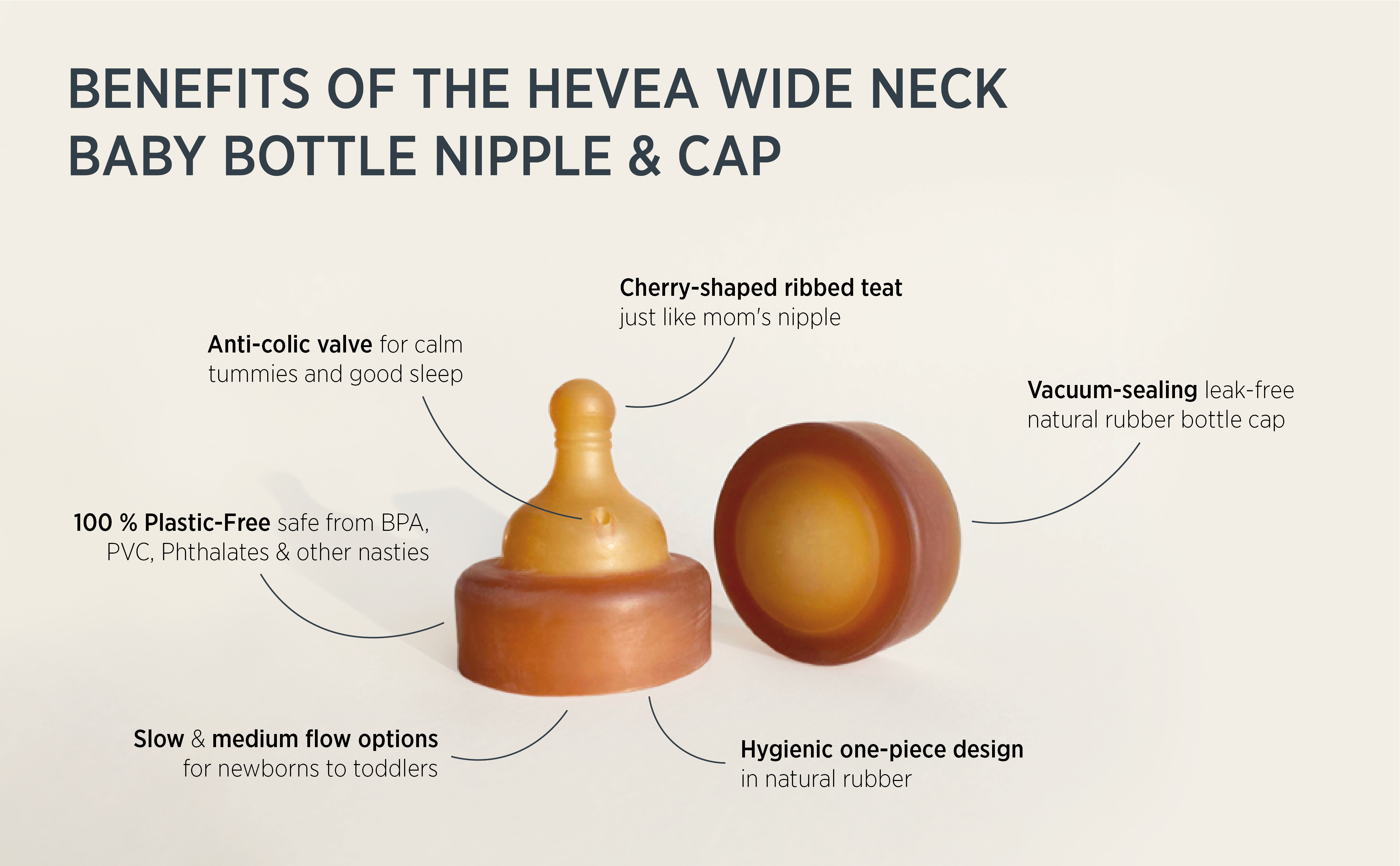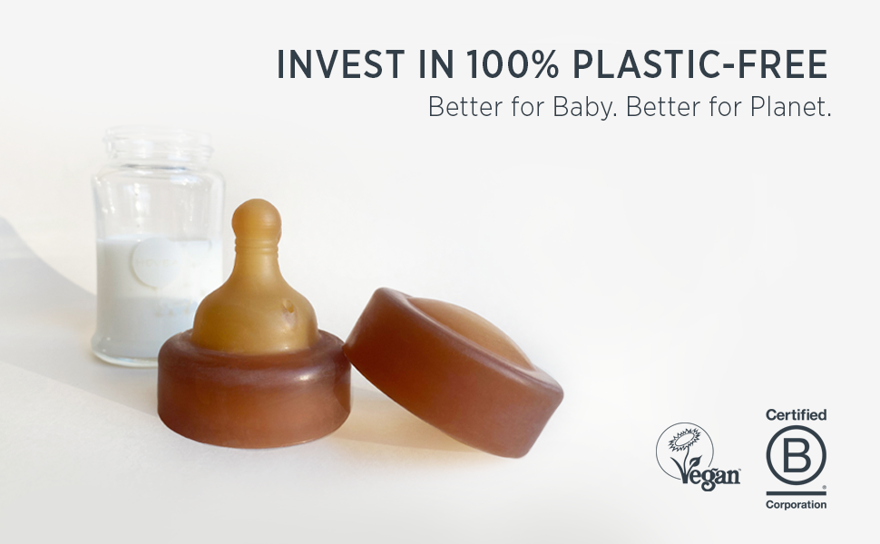 موثوق به من قبل الآباء ليكون طبيعيًا وآمنًا - مصنوع من المطاط الطبيعي بنسبة 100%، غطاء زجاجة الأطفال الزجاجي ذو الرقبة العريضة من HEVEA نباتي ومعتمد نباتي، وبالتالي فهو خالي تمامًا من BPA وBPS وPVC والفثالات وغيرها من المواد الضارة.