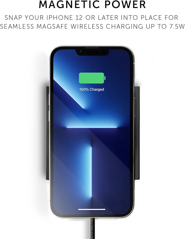 - الطاقة المغناطيسية: قم بإسقاط وإطباق جهاز iPhone الخاص بك الذي يدعم MagSafe على لوحة الشحن لشحن لاسلكي مغناطيسي سلس يصل إلى 7.5 وات.