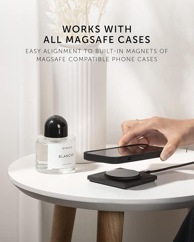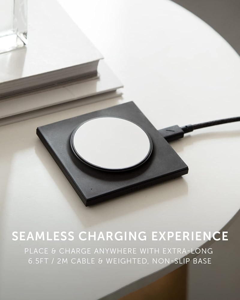 شاحن لاسلكي مغناطيسي Native Union Drop - لوحة شحن لاسلكية MagSafe غير قابلة للانزلاق لأجهزة iPhone 15، 15 Plus، 15 Pro، 15 Pro Max، iPhone 8 إلى iPhone 15 - شحن سريع 15 وات للأجهزة المتوافقة مع Qi