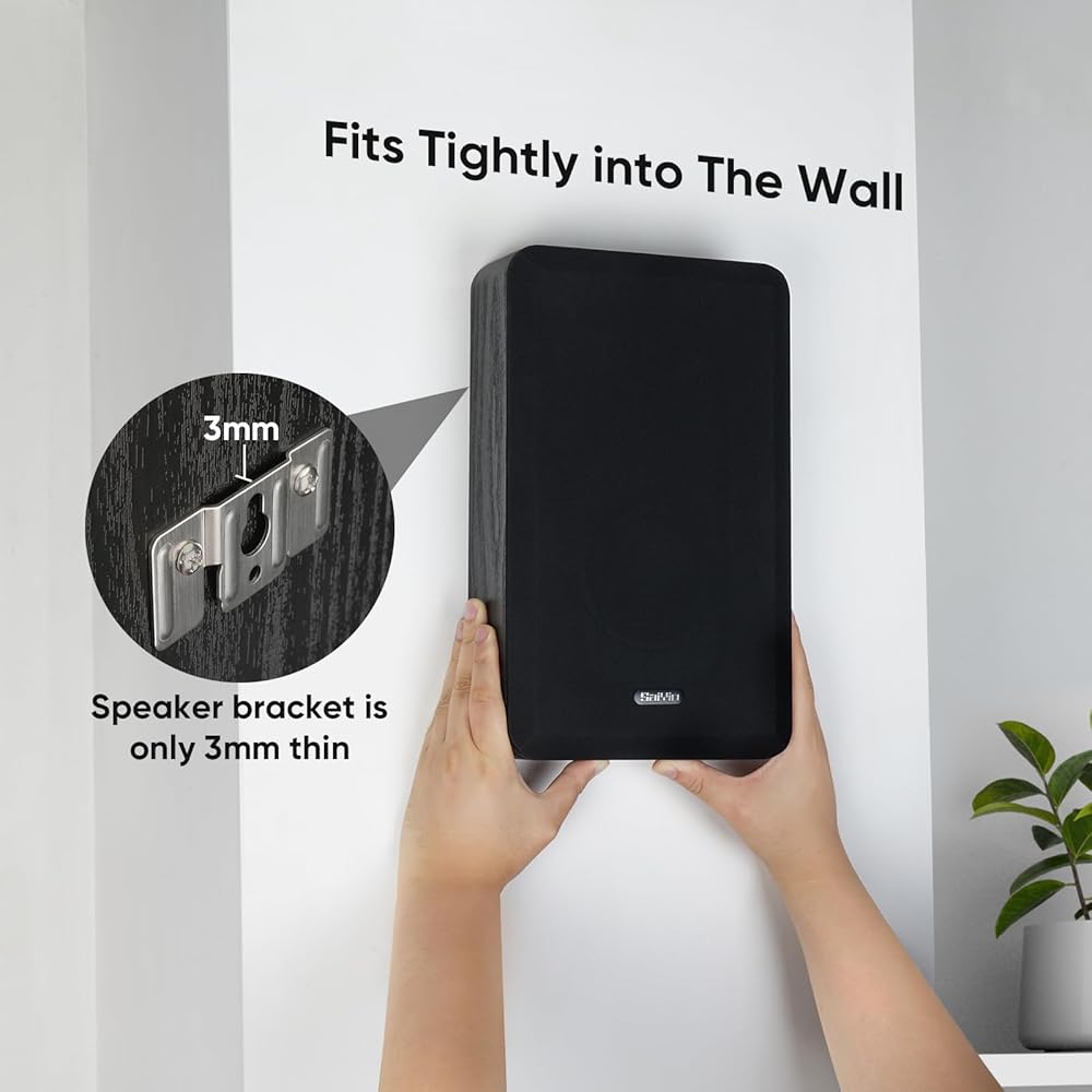 • تصميم التثبيت على الحائط: مع مجموعة التثبيت المخصصة على الحائط، يمكن تركيب مكبرات الصوت هذه بسهولة على أي سطح مستو في منزلك أو مكتبك. لا يوفر هذا التصميم مظهرًا نظيفًا وأنيقًا فحسب، بل يضمن أيضًا أداء صوتي واسع النطاق دون المساس بالجودة. تم تصميم المسافة بين حامل مكبر الصوت خصيصًا لتكون 3 مم فقط، مما يسمح بتركيب محكم على الحائط باستخدام براغي مطابقة. يؤدي هذا إلى زيادة المساحة المحدودة الخاصة بك إلى الحد الأقصى مع تقديم تجربة صوتية لا مثيل لها.