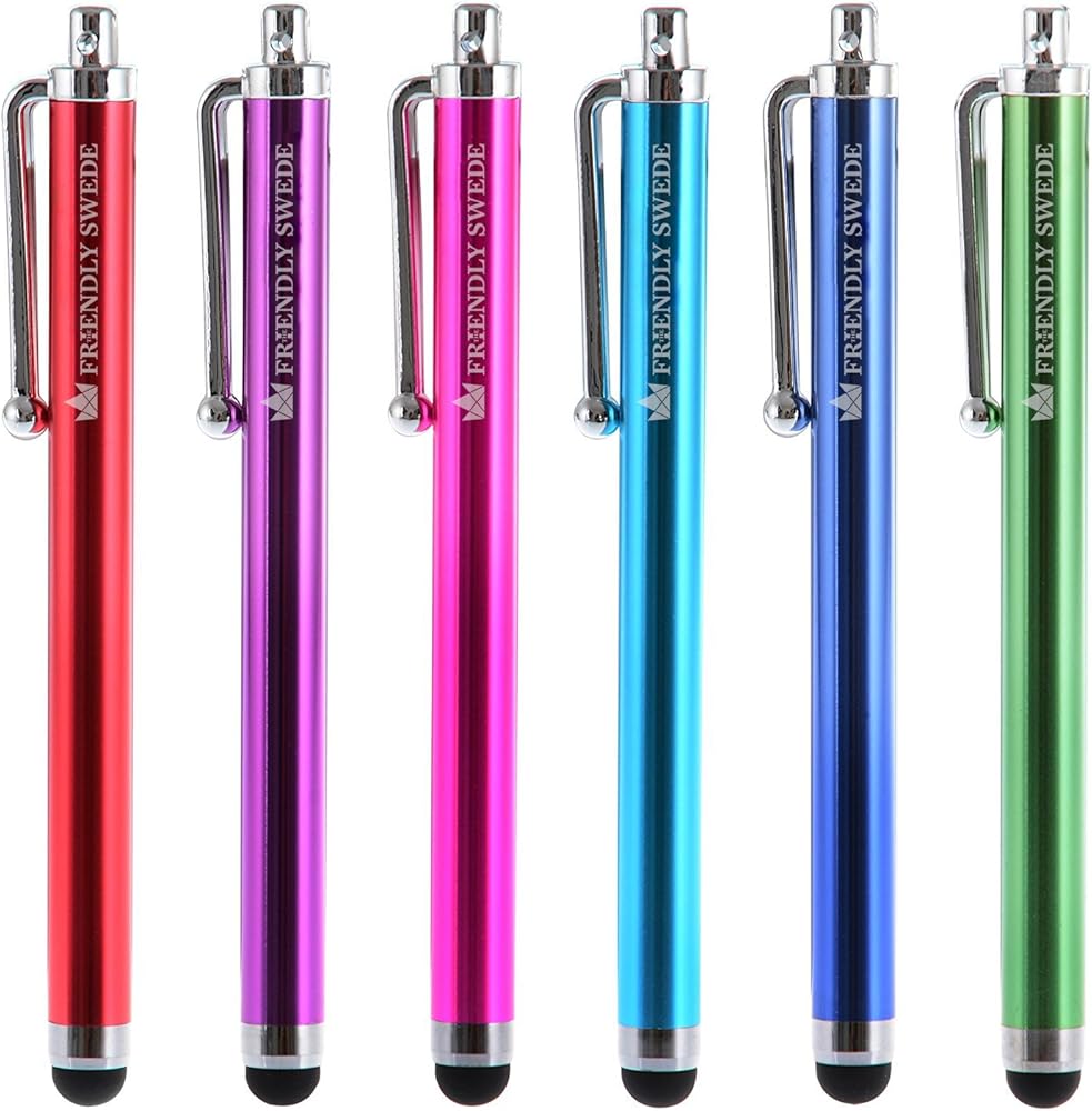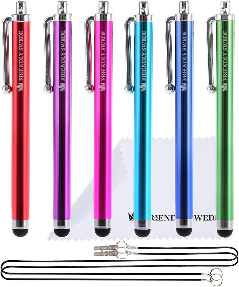 أقلام اللمس السويدية الصديقة لشاشات اللمس مقاس 4.5 بوصة، 6 عبوات من أقلام اللمس لأجهزة iPad، وقلم لمس الشاشة لجهاز iPhone - بما في ذلك 2 × 15 حبل وقطعة قماش لتنظيف الشاشة - أحمر/أرجواني/وردي/أزرق فاتح/أزرق داكن/أخضر