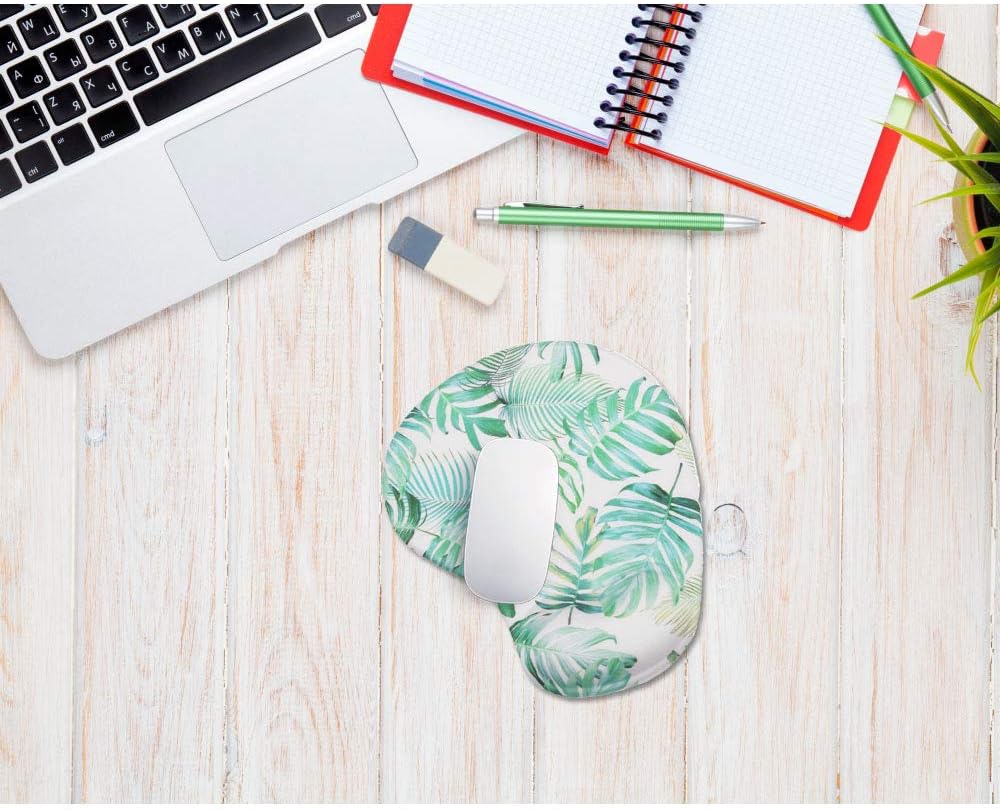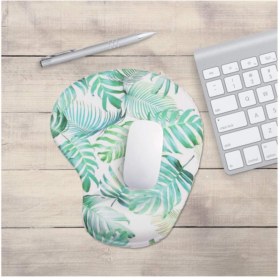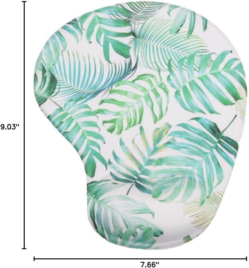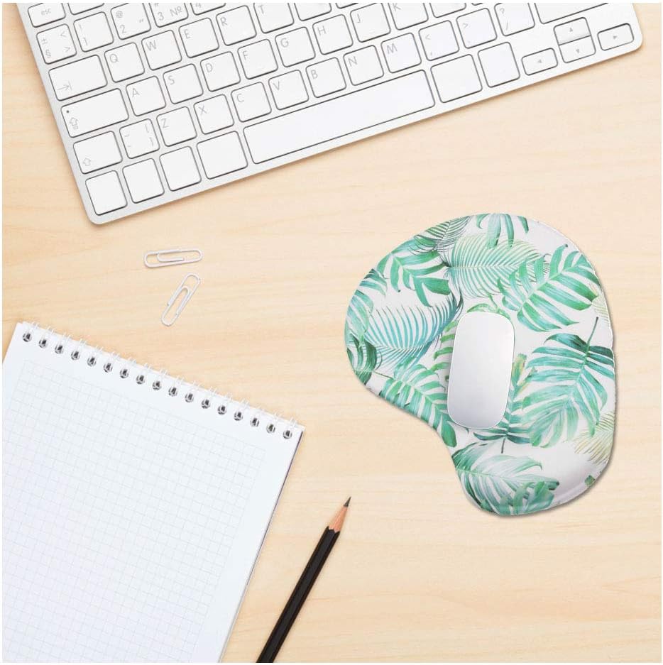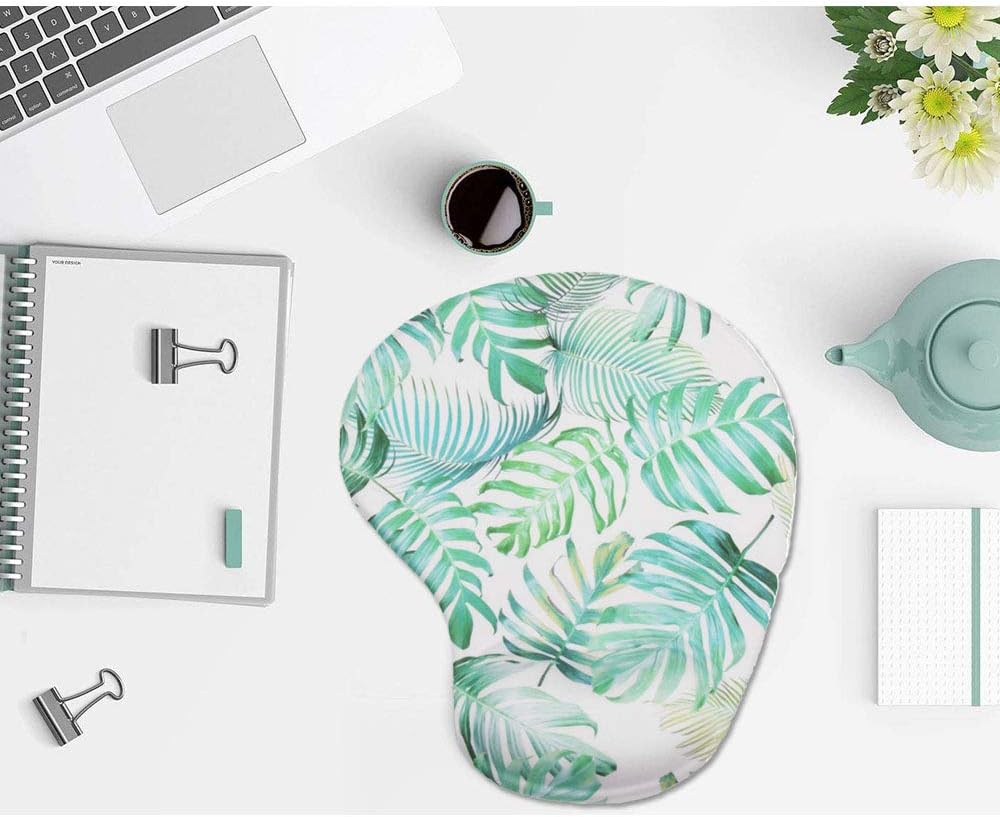 لوحة ماوس مريحة مع دعم للمعصم، مسند للمعصم مصنوع من جل السيليكون، تصميم بقاعدة مطاطية غير قابلة للانزلاق لحماية معصميك وإزالة الفوضى على مكتبك (ورقة خضراء استوائية)