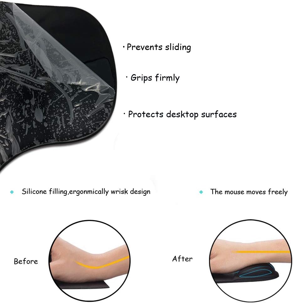 Mouse pad with gel wrist support, helps keep your wrist in a proper position and reduce pressure and pinching of the wrist, make your mouse use more precise and comfortable.