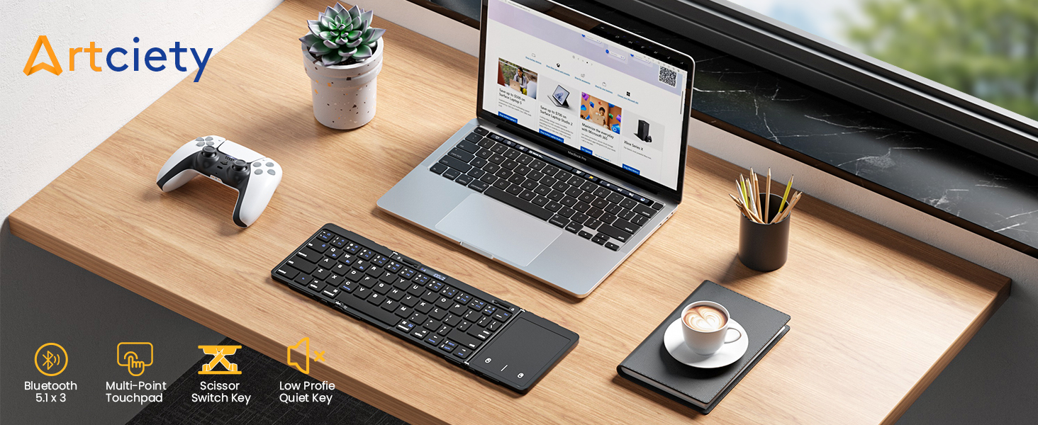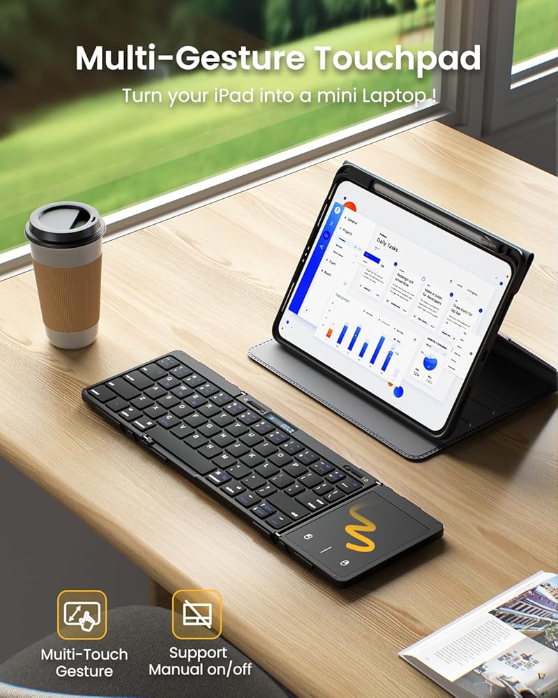 • 【لوحة تتبع متعددة اللمس】لوحة مفاتيح بلوتوث قابلة للطي من Artciety مع لوحة تتبع مدمجة متعددة اللمس تتكيف بشكل مثالي مع أنظمة متعددة وتوفر إيماءات لوحة التتبع المختلفة لتوفير تجربة مريحة عند النقر والتمرير والتمرير على المحتوى دون عناء.