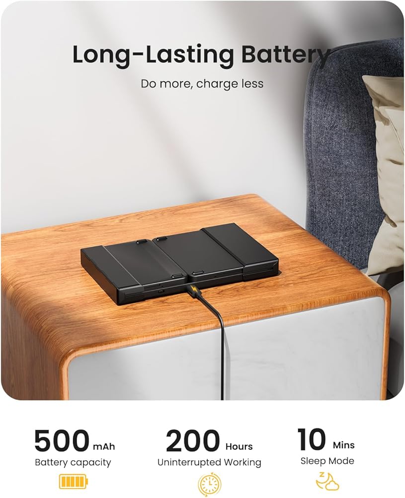 • 【سعة بطارية 500 مللي أمبير في الساعة】يمكن شحن لوحة مفاتيح السفر القابلة للطي من Artciety بالكامل خلال 2-3 ساعات فقط. بعد الشحن، يمكن أن يكون في وضع الاستعداد لأكثر من 100 يوم أو العمل بشكل مستمر لمدة 200 ساعة. وسيدخل أيضًا في وضع السكون التلقائي بعد 30 دقيقة من عدم النشاط لتوفير البطارية. عمر البطارية الطويل يزيد من تكرار الاستخدام، مما يسمح لك بالتركيز بشكل أكبر على العمل!