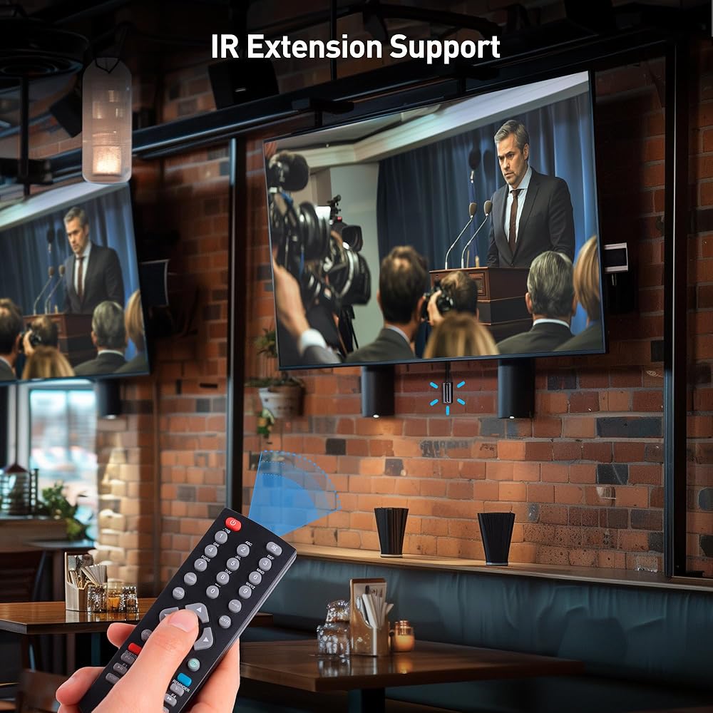 دعم تمديد الأشعة تحت الحمراء: تحكم في مصدر HDMI الخاص بك من موقع العرض عن بعد باستخدام جهاز استقبال IR المدمج، مما يعزز الراحة والمرونة في الإعداد الخاص بك.