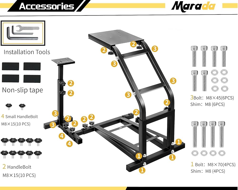 【تجميع سريع】مثقوب مسبقًا، كامل مع الملحقات. إذا لم تكن الثقوب متطابقة، فإن الحامل الفولاذي لعجلة سباق مارادا الخاص بنا يدعم الحفر. تركيب عجلة القيادة: يمكنك استخدام المشابك مباشرة.