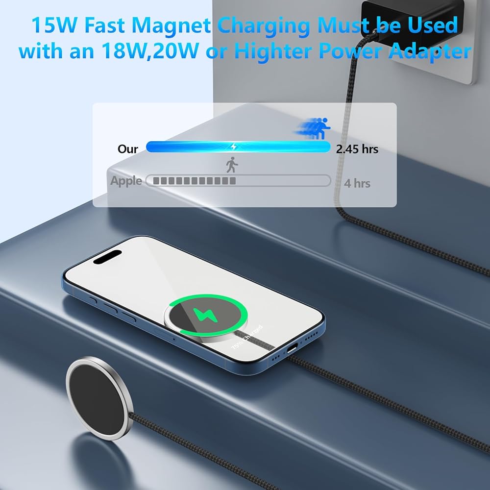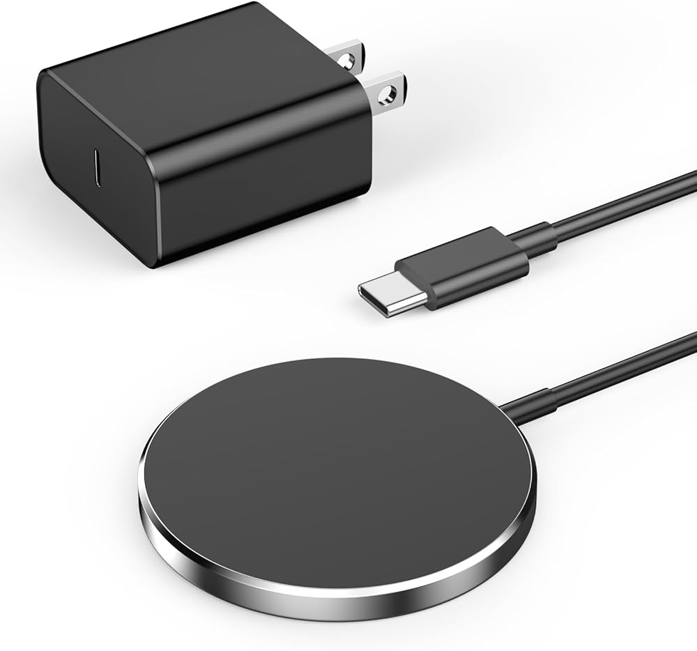 • 【What You Get】 1 Pack Magnetic Wireless Charger for iPhone 15 14, 1 Pack 20W PD USB C Wall Charger Adapter, 1 Pack User Manual. We also provide a 3-year worry-free warranty and 24/7 friendly customer service. The magnetic charger for iPhone 15 is so lightweight and compact, you can put it pockets, shoulder bags, handbags, and travel bags. Any questions about the wireless charger iPhone, please contact us and we will reply within 12 hours.