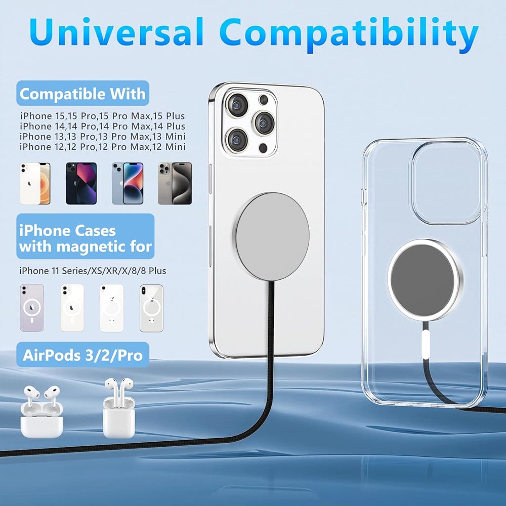 • 【Specifically for iPhone 15/14/13/12 Series】 New magnetic technology makes wireless charging a snap. The Ucaca magnetic wireless charger is specially designed for iPhone 15/15 Plus/15 Pro/15 Pro Max,iPhone 14/14 Plus/14 Pro/14 Pro Max, iPhone 13/13 Mini/13 Pro/13 Pro Max, iPhone 12/12 Mini/12 Pro/12 Pro Max, AirPods 3/2/Pro/Pro 2 with a wireless charging case.