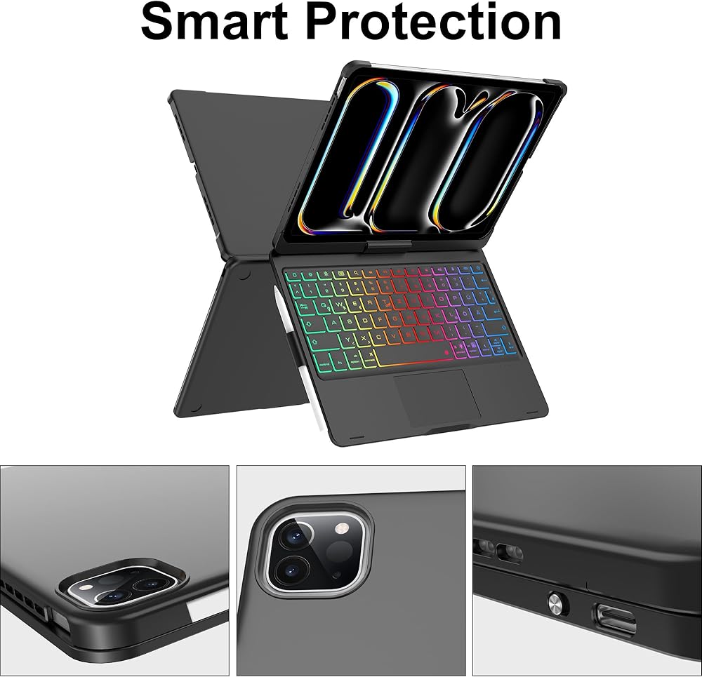 【حماية لكامل الجسم】تم تصميم حافظة لوحة المفاتيح لجهاز iPad Pro 13 بوصة (M4، 2024) بغطاء صلب متين يغطي جميع جوانب جهاز iPad الخاص بك، مما يوفر حماية أمامية وخلفية لجهاز iPad Pro 13 الخاص بك ضد الصدمات/السقوط العرضي، الخدوش واللطخات وأي أضرار أخرى. توجد جميع الفتحات في المكان المناسب لسهولة الوصول إلى المنافذ وعناصر التحكم، مما يوفر حماية وراحة مثالية للاستخدام اليومي.