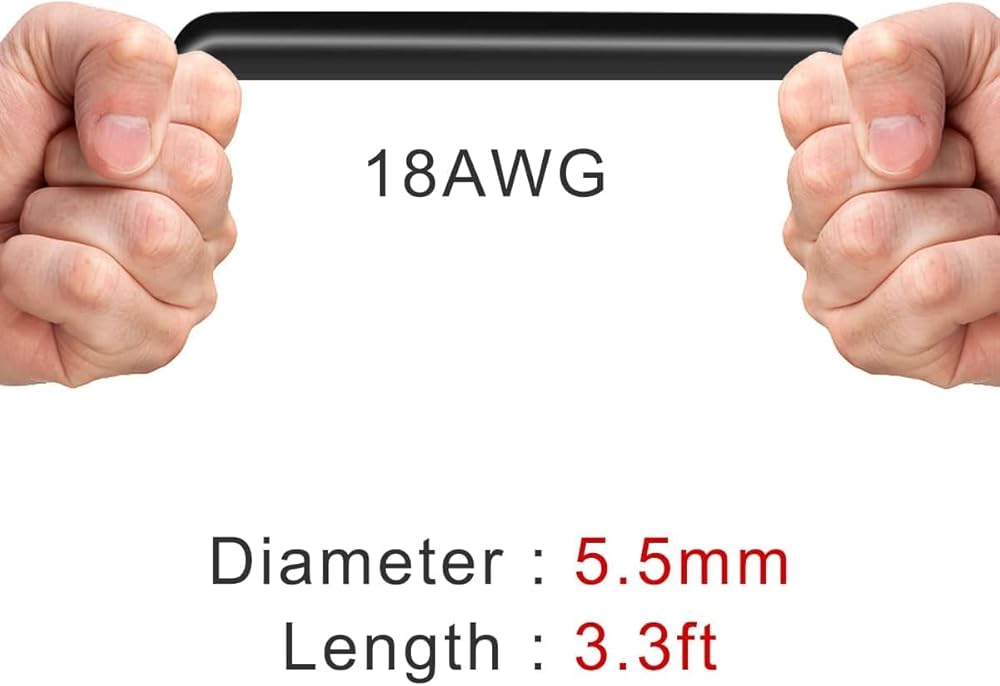 🔴 18AWG DC Cable: Double 1.5mm² copper wire, thicker wire diameter, provide faster and more stable conductivity