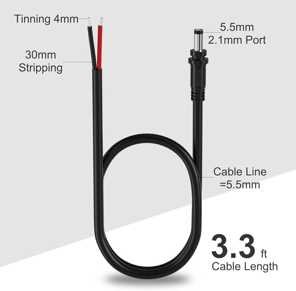 🔴 Easy to use: The end of the DC 5.5 mm x 2.1 mm power cord has been pre-stripped and tin-plated, which is easy to solder and install,connect.