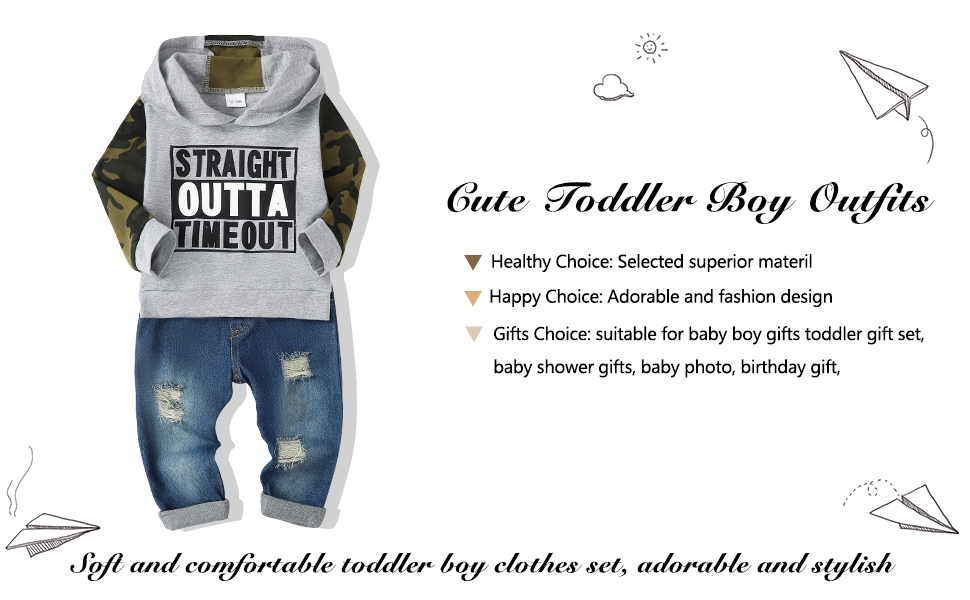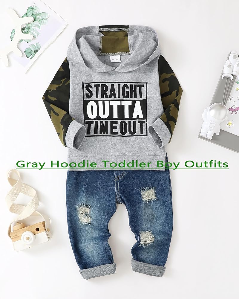 Renotemy 3 4 سنوات من العمر الصبي ملابس الطفل الصبي هوديي الشتاء قمم جرزاية جاكيتات الجينز السراويل الزي مجموعة 3T-4T الصبي الملابس كامو رمادي