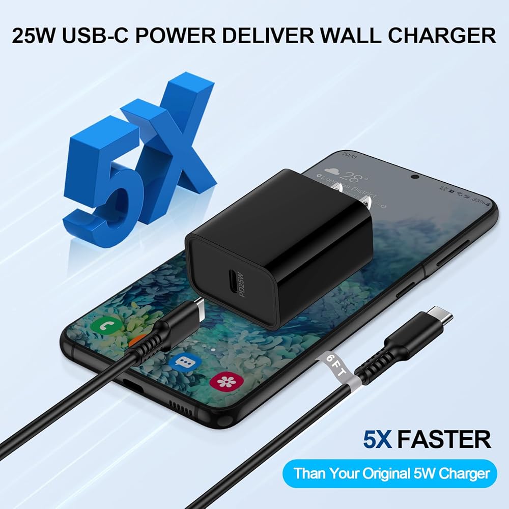 Samsung Galaxy A15 5G USB C Brick Fast Charger Type C Kit-25W USB C Fast Charger with 6ft USB C to C Charging Cord