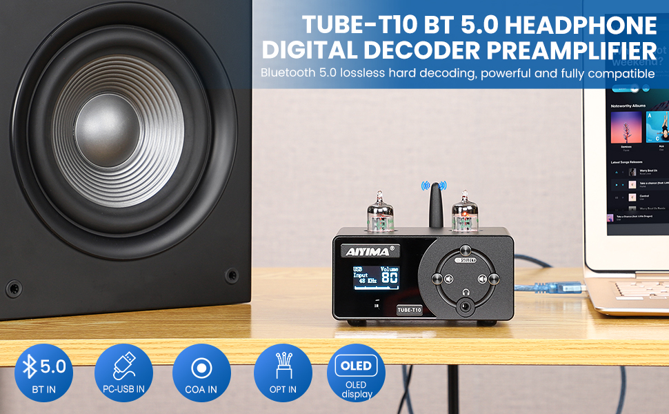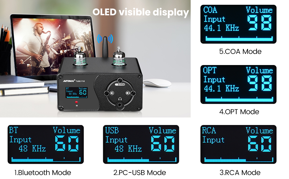 ❶ طرق إدخال صوت متعددة، تدعم مدخلات Bluetooth 5.0/PC-USB/COAX/OPT/RCA من أجهزة مختلفة مثل iPod أو الهاتف أو MP3 أو التلفزيون أو مشغلات DVD أو الكمبيوتر المحمول أو الكمبيوتر المكتبي أو مشغلات الوسائط المتدفقة الأخرى وما إلى ذلك. مضخم سماعة الرأس ذو الأنبوب الجميل مصمم حصريًا للعملاء الذين يتابعون صوت HiFi!