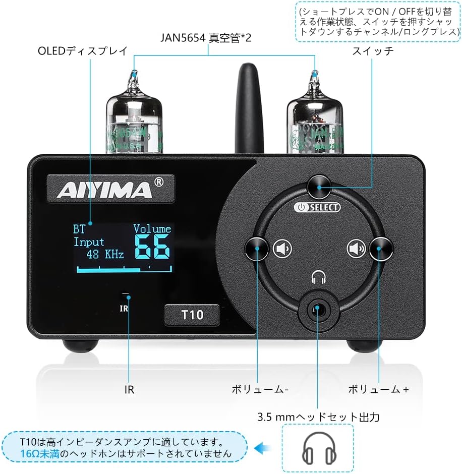❺ تصميم فريد، مع شاشة OLED، واسعة وبسيطة وجميلة. هيكل قوي، أنابيب JAN5654 يمكن أن توفر صوتًا دافئًا واضحًا، كل شيء يعمل بشكل رائع معًا، T10 الخاص بنا هو مضخم أنبوبي جيد لمضخم الطاقة الخاص بك، وهو أيضًا مضخم صغير لسماعات الرأس