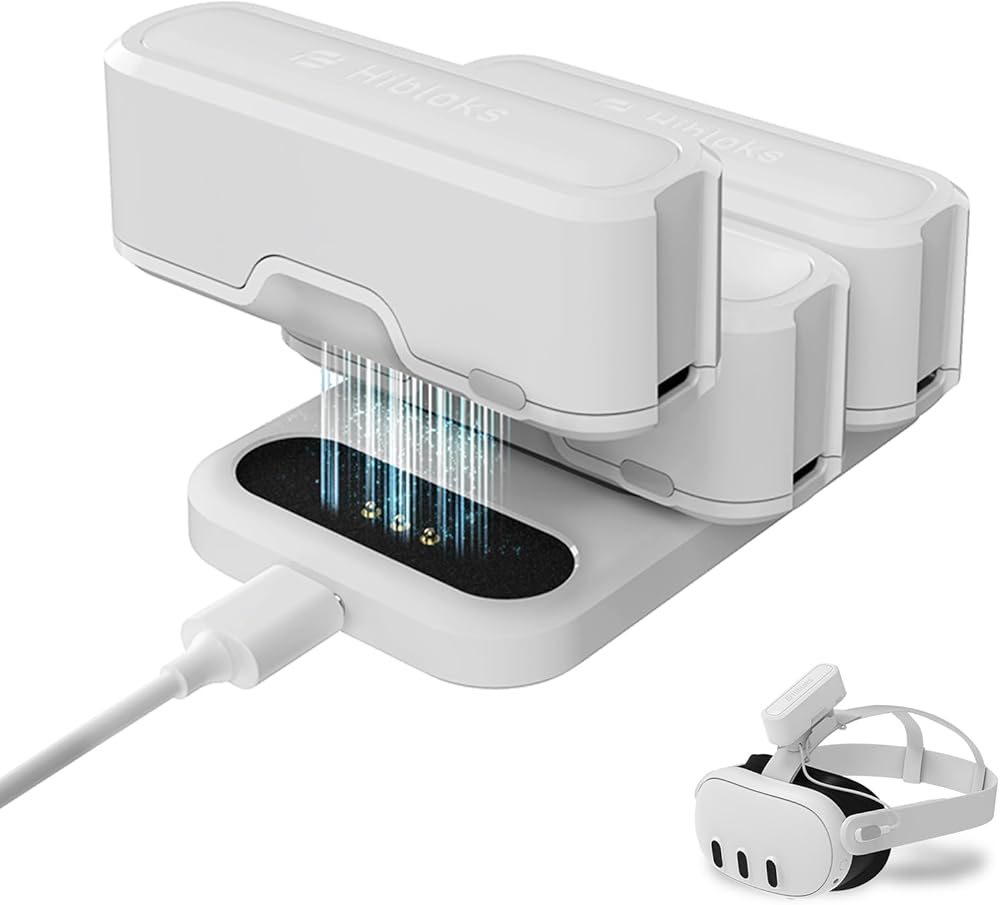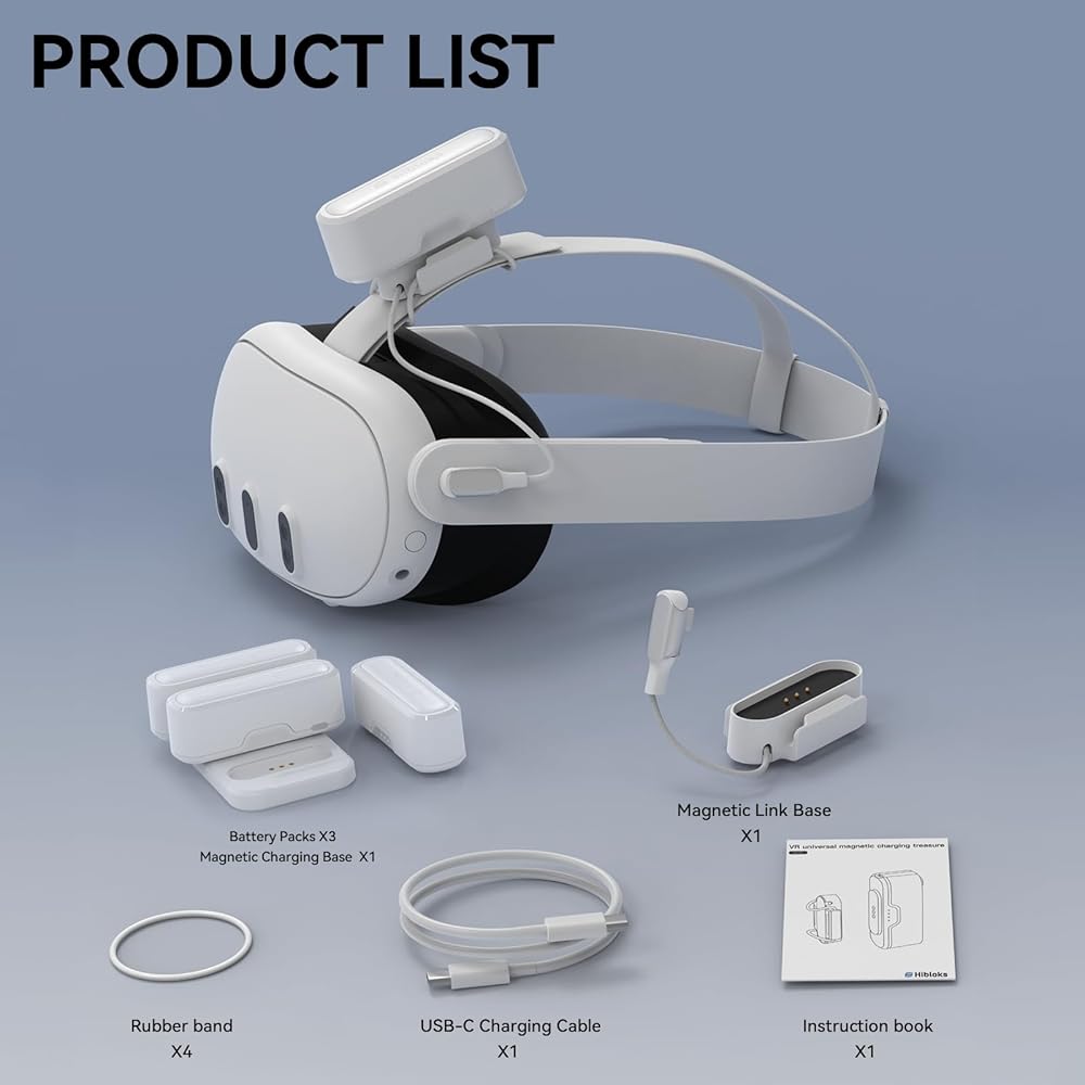 حزمة بطارية HiBloks لـ Oculus/Meta Quest 3 مع شحن سريع بقدرة 5000 مللي أمبير في الساعة 18 وات PD لشحن الواقع الافتراضي الخاص بك وتمديد وقت اللعب، لملحقات Meta Quest 3/2/Pro (3 حزم بطاريات + قاعدة شحن مغناطيسية)
