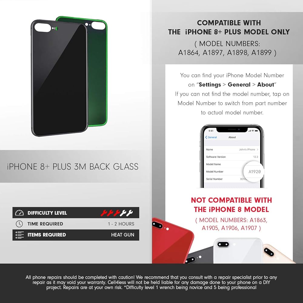 Product: iPhone 8+ PLUS back glass replacement kit