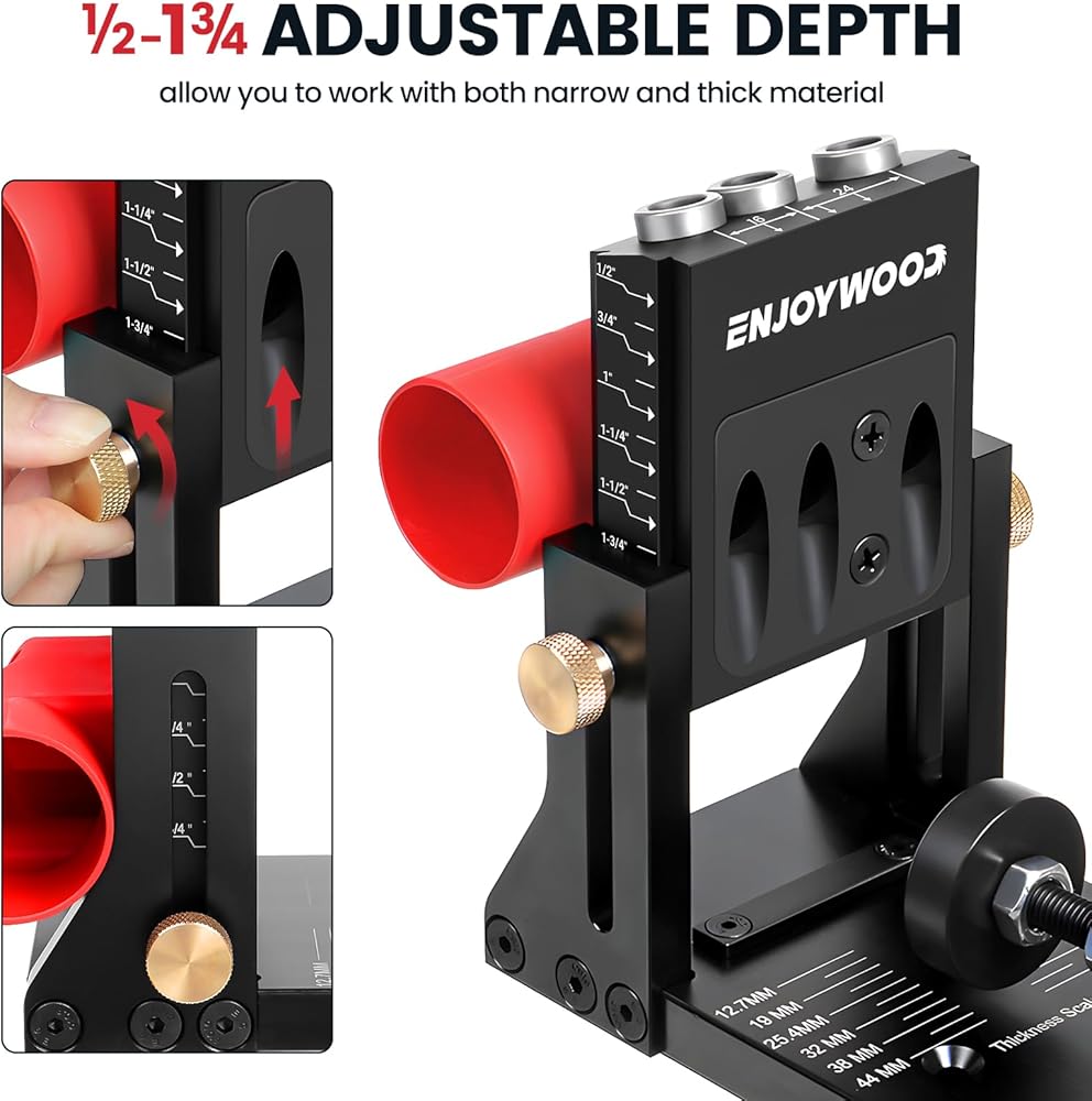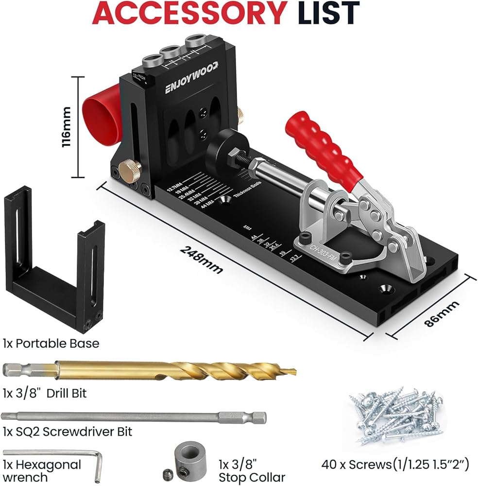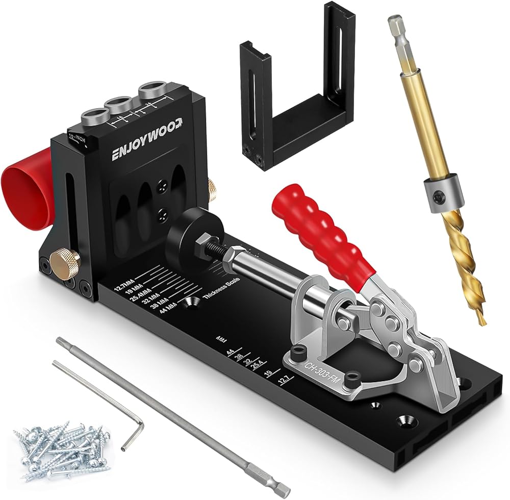 ENJOYWOOD XK4S PRO Pocket Hole Jig Kit Aluminum Alloy Adjustable Woodworking Drilling Guide for Angled Holes with Drill Bit