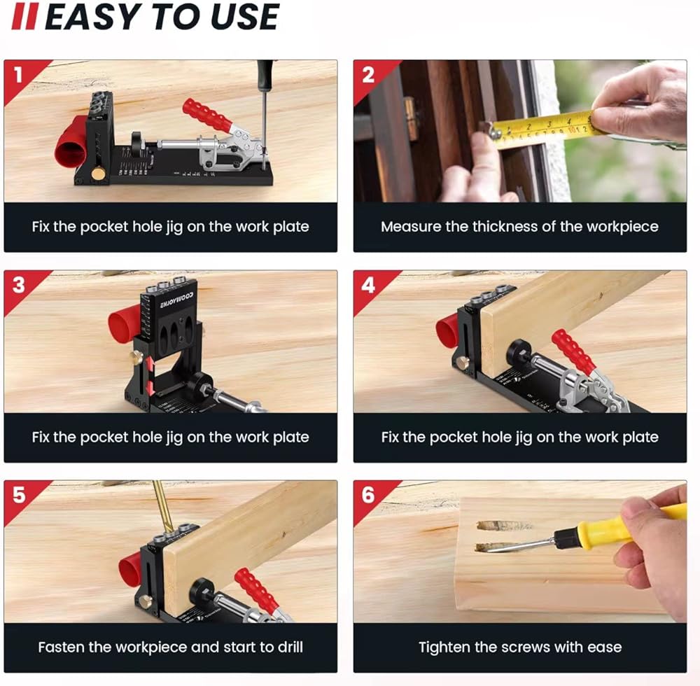 • 【Wide Range of Applications】Pocket Hole Jig caters to both DIY enthusiasts and professionals, offering versatility for 𝐟𝐮𝐫𝐧𝐢𝐭𝐮𝐫𝐞 𝐦𝐚𝐤𝐢𝐧𝐠,𝐫𝐞𝐟𝐮𝐫𝐛𝐢𝐬𝐡𝐢𝐧𝐠,𝐚𝐧𝐝 𝐫𝐞𝐩𝐚𝐢𝐫𝐬.