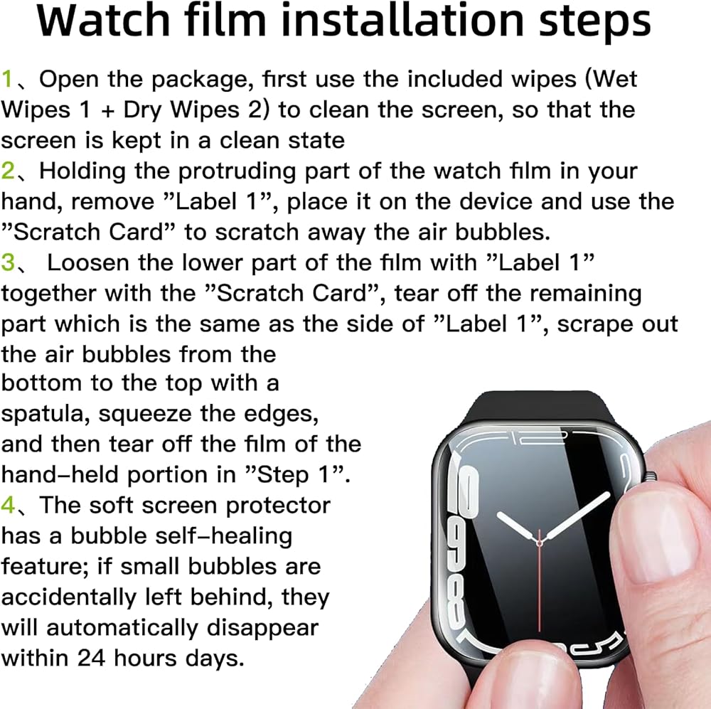 ⌚【طبقة مرنة مطورة】 مصنوعة من مادة TPU، مع مرونة ممتازة، يمكن أن تناسب تمامًا السطح المنحني لشاشة الساعة، وليس من السهل إنتاج فقاعات أو تزييف الحواف، لضمان تجربة مستخدم جيدة (ملاحظة: إذا كانت كمية صغيرة من الهواء فقاعات عند تطبيق الفيلم، يرجى تركه لمدة 24 ساعة، وسيتم التخلص من فقاعات الهواء تلقائيًا)
