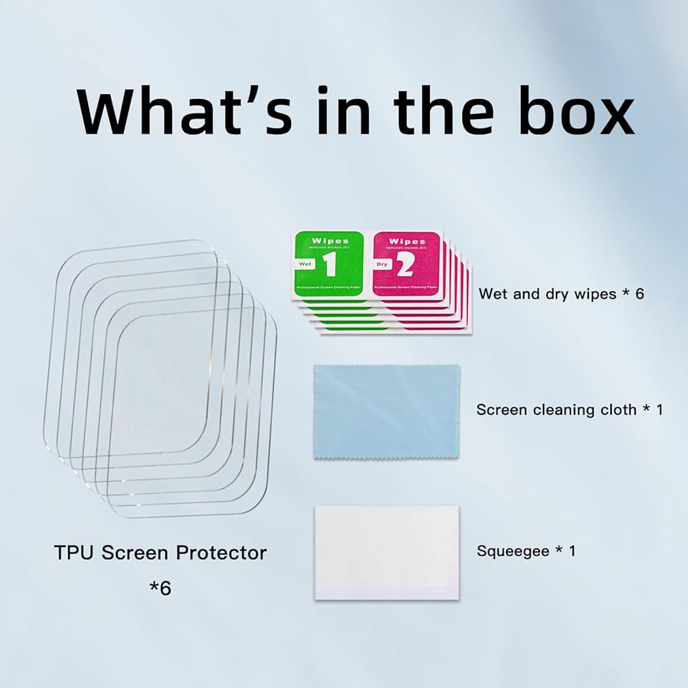 ⌚【لا يوجد لاصق متبقي】سهل التركيب، لن يترك طبقة TPU أي لاصق أو بقايا عند الاستبدال، مما يحافظ على المظهر الأصلي لشاشة الساعة دون التأثير على حساسية اللمس والتأثير البصري.
